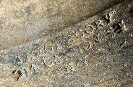 号监控中心 惊喜铭文 通过大卫Krop 贴在2008年4月3日2015年11月27日 艾琳继续研究前面提到的黄铜阀门,最近她发现了一个有趣的铭文。上面写着“Jas Gregory, 114 Cannon St, NY.”坎农街位于曼哈顿下东区,与布鲁克林造船厂隔水相望。1893年,《纽约时报》提到坎农街106号詹姆斯·格雷戈里先生开的一家商店发生火灾,造成多人受伤。格雷戈里先生的金属店在1897年被取消了赎回权。看看这些照片! 带有红色箭头指示铭文位置的阀门图像 铭文