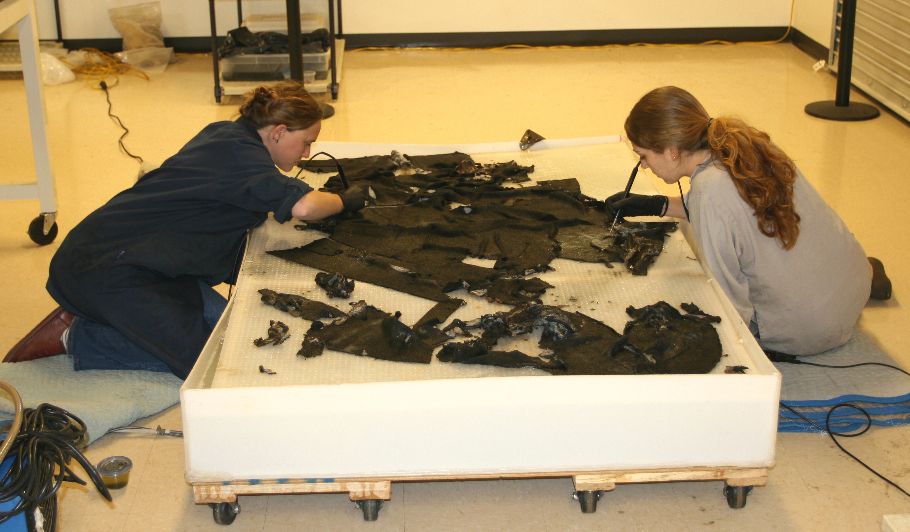 号监控中心 羊毛外套 通过埃尔莎Sangouard 贴在2009年10月9日,2015年11月27日 劳拉和我开始清理在挖掘过程中在炮塔中发现的外套。为了使清洗过程更有效,必须建造一个特殊的罐来压平涂层。藏物现在放在一个塑料网格上,让污垢直接落在罐的底部。 在做大衣