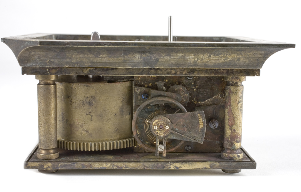 的监控的时钟机芯在盐水中浸泡了139年之后,仍然保持着惊人的良好状态,这是因为它的许多部件都是由优质黄铜和铜镍合金制成的。