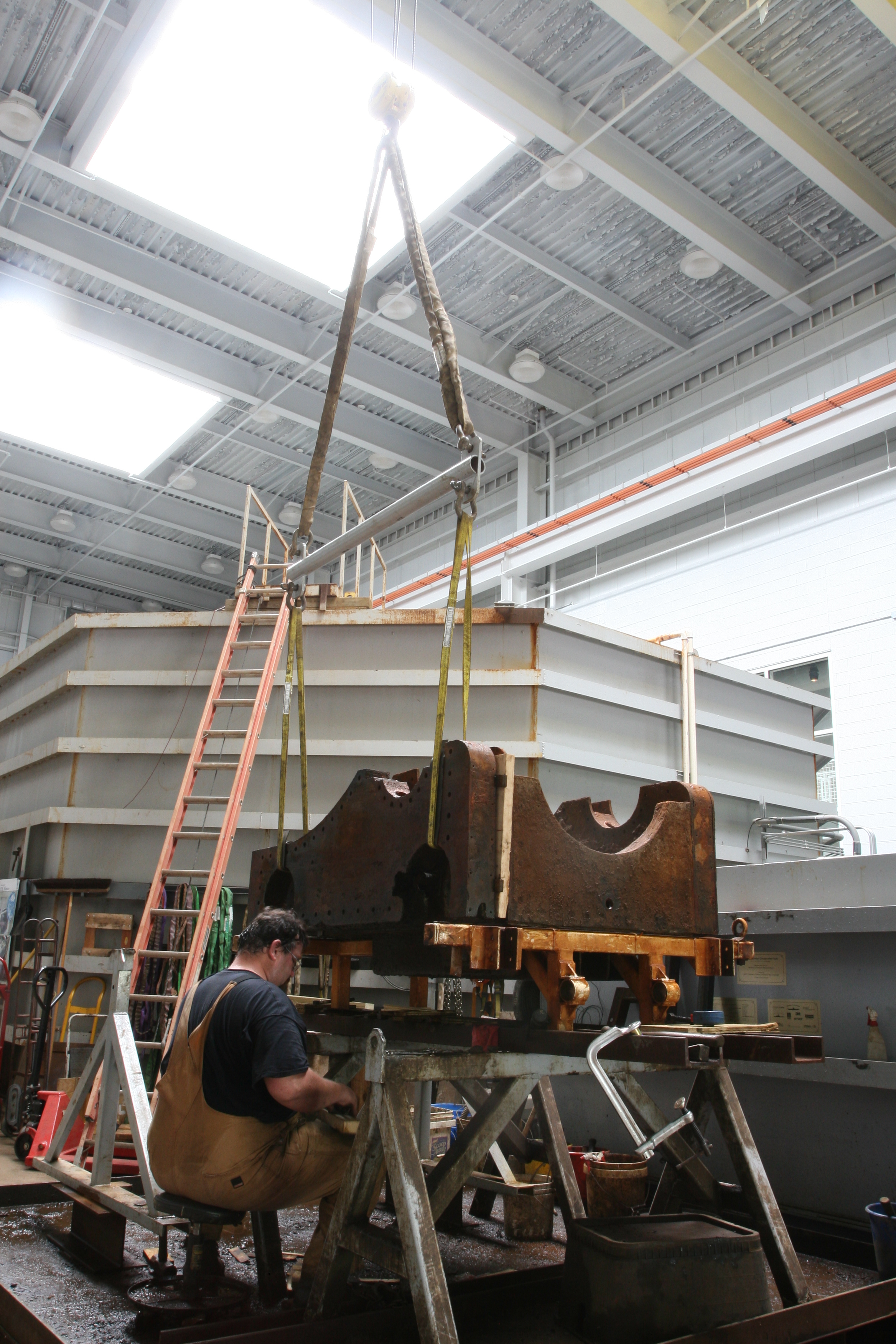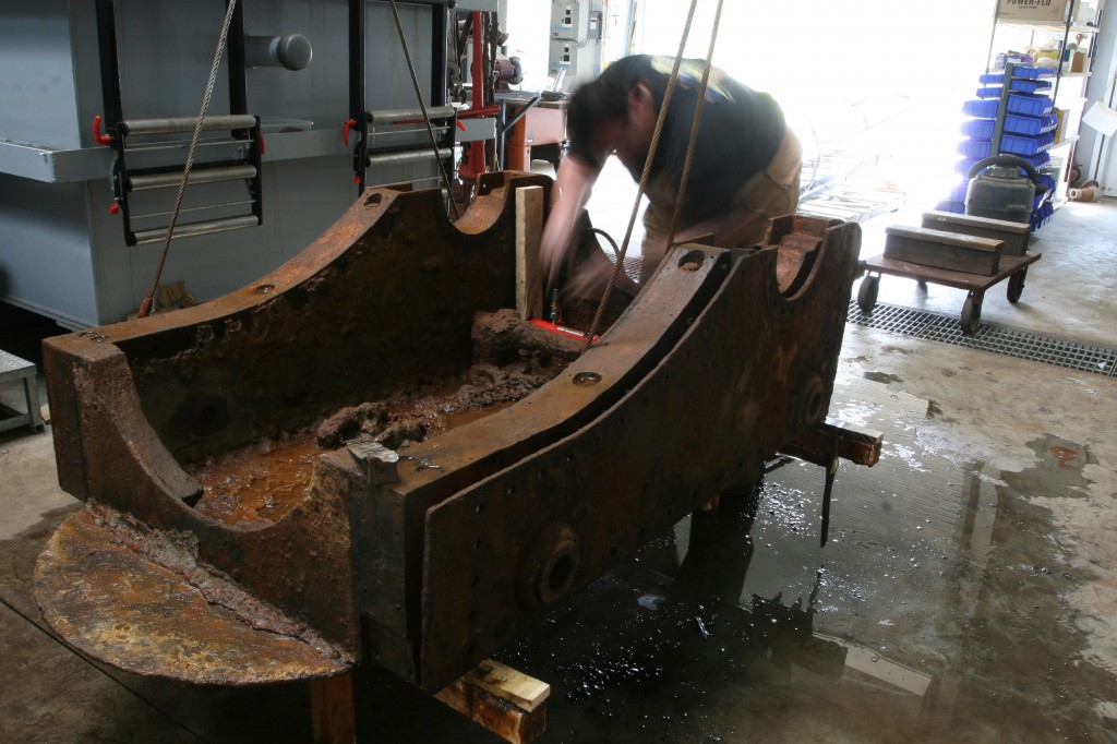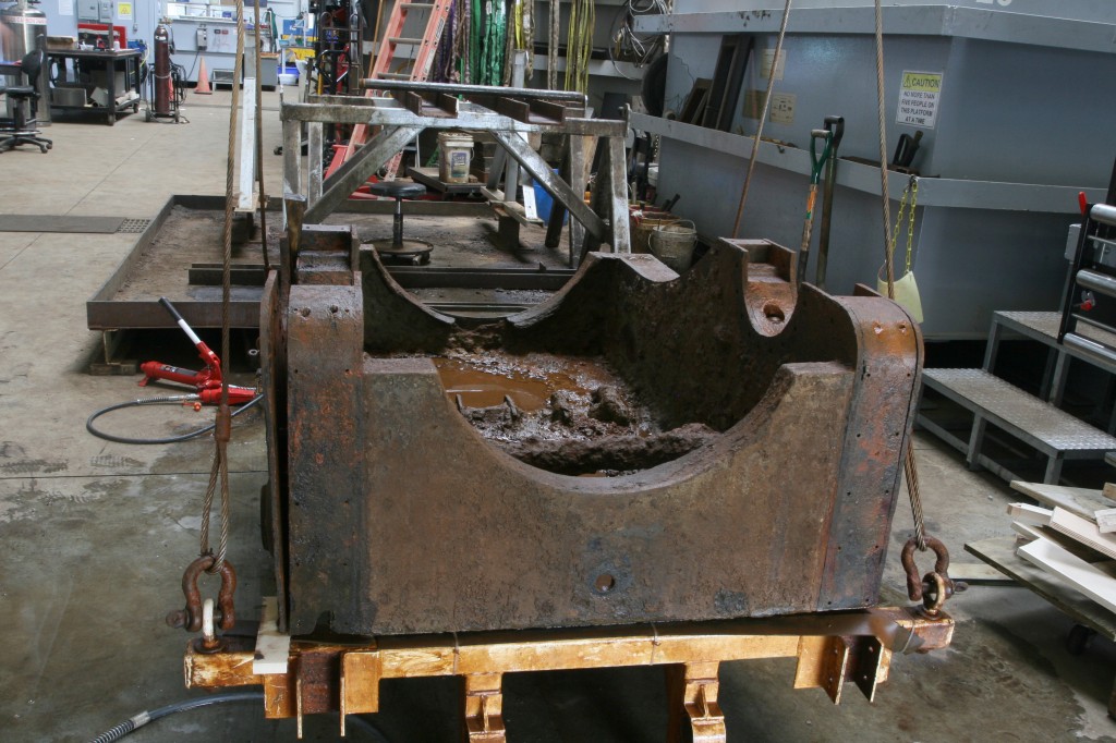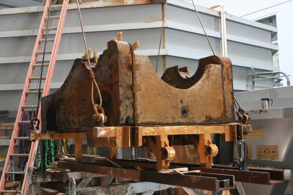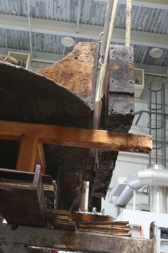 锻铁侧板和木材元件现在在适当的存储解决方案。在考虑干燥之前,这些部件还有很多工作要做(比如试着去除穿过木片的长铁支撑螺栓,从铁板中去除铜合金元素,以及对每个部件进行数月的适当处理),但接下来的治疗阶段需要在我们继续之前把这些碎片取出来。所以,我们就快成功了!!
