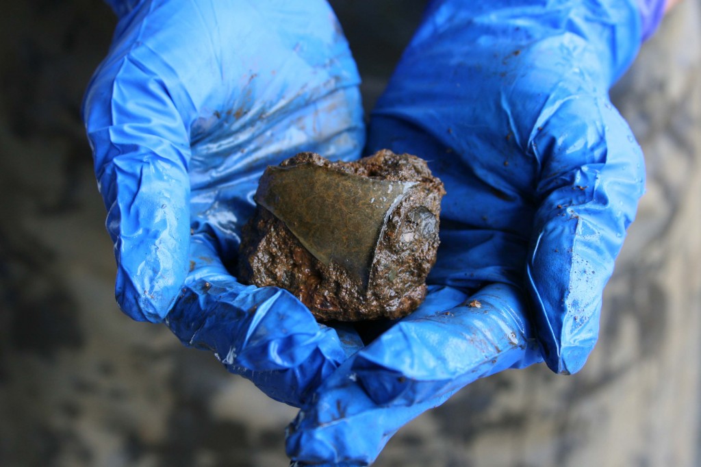 总的来说,筛选过程是缓慢和乏味的,但我们确实找到了东西!!下图是埃尔莎找到的一块玻璃碎片。