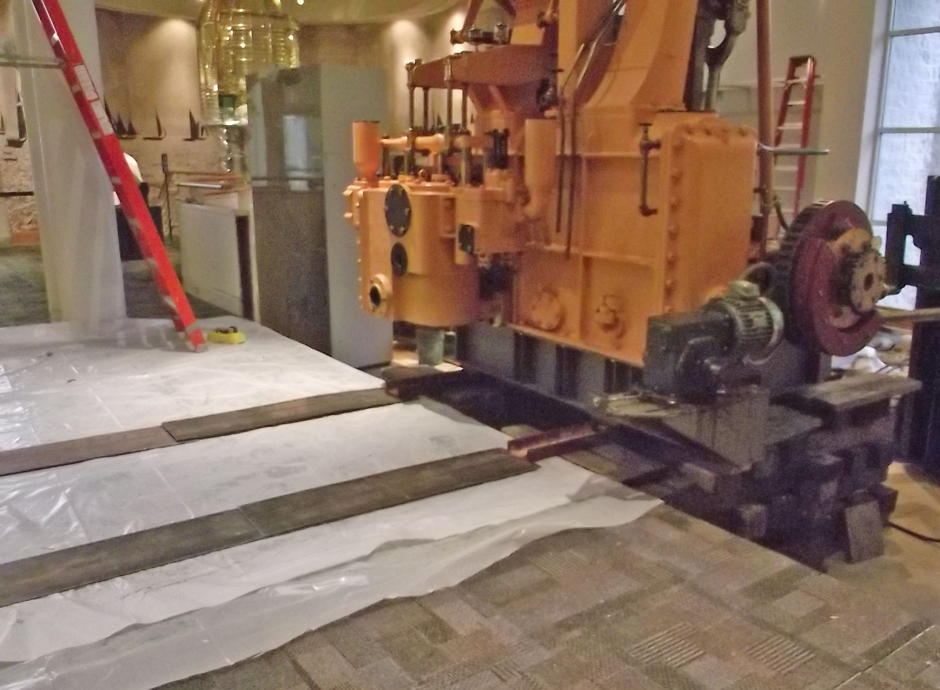 上周,我们完成了从切萨皮克湾画廊(Chesapeake Bay Gallery)移出文物的工作,现在这里看起来空荡荡的!汉普顿路起重机和索具帮我们移出了最后两个大物体,一个海岸警卫队的浮标和一个引擎。