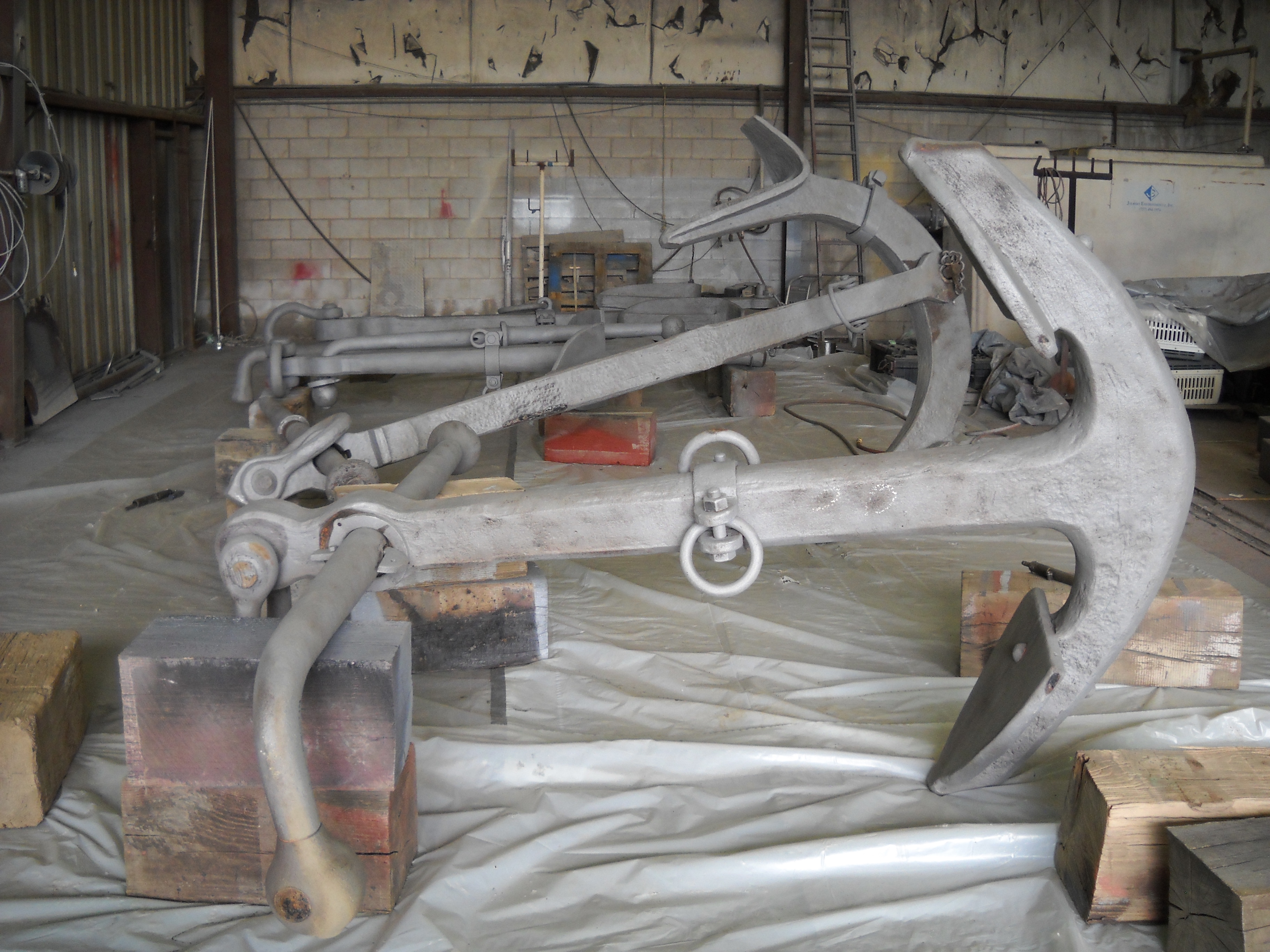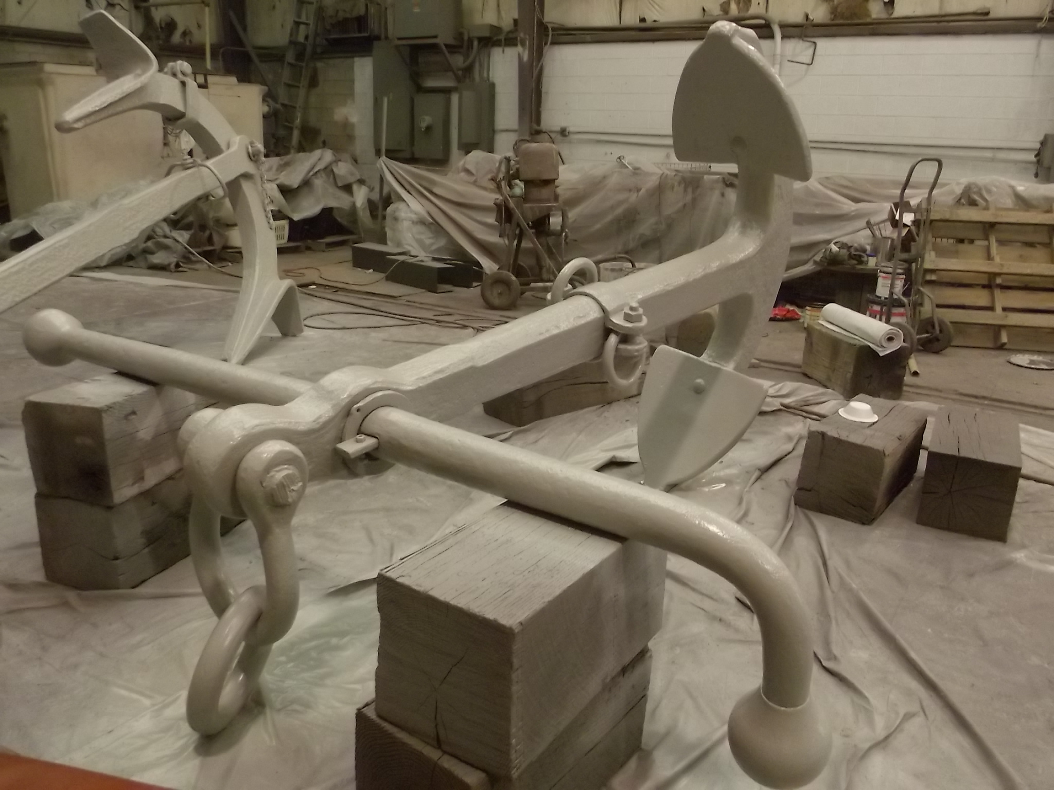 这个特殊的锚(见上图)是由波士顿金属公司的巴尔德锚、链和锻造部门在1961年捐赠的大量锚的一部分。非常慷慨的捐赠。和许多其他的锚一样,这个锚被拉上了戴维斯船工作Everette Howell和其他人为我们进行爆破、清洁和油漆工作。我们非常感谢他们的帮助!
