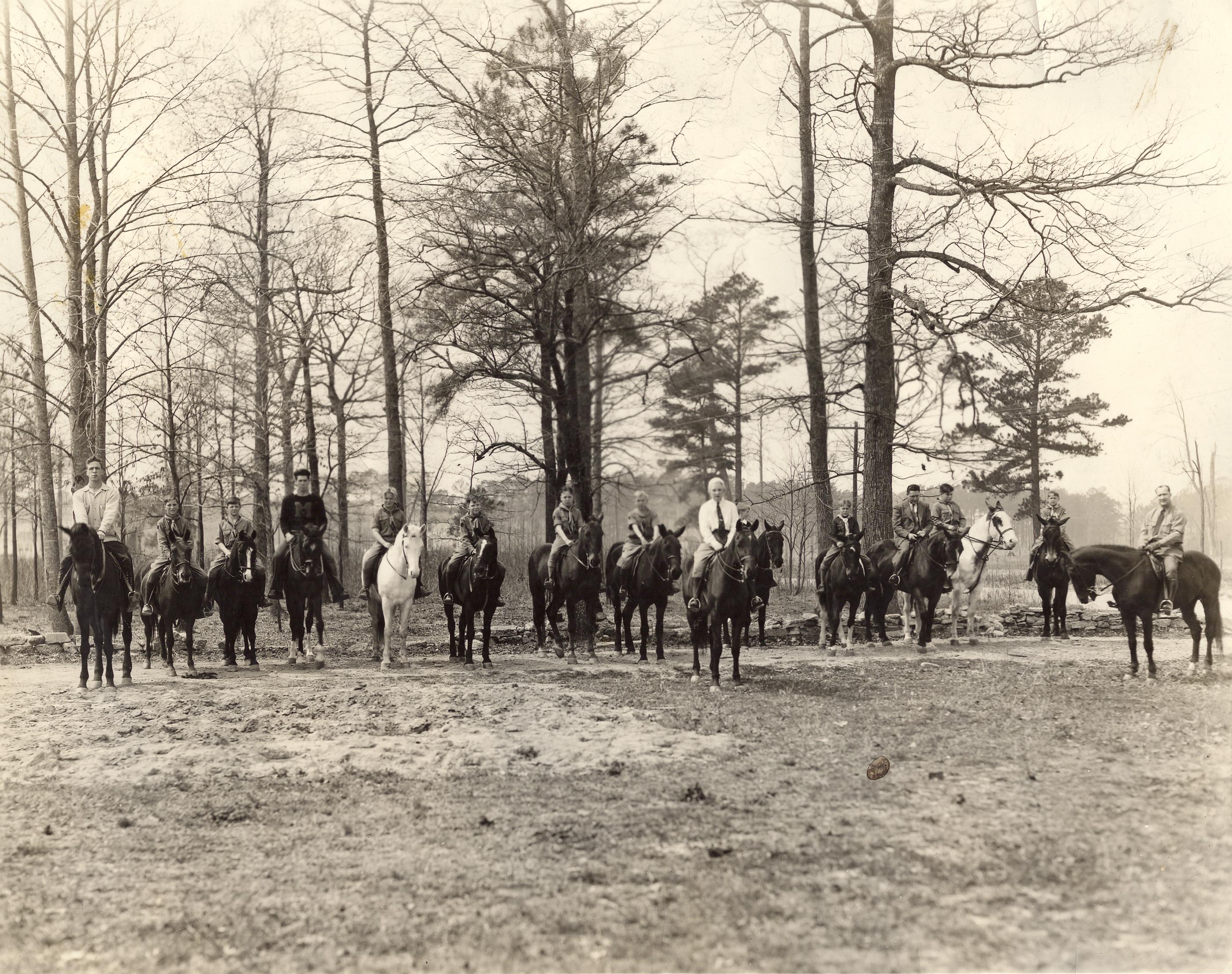 上图中你可以看到1938年一群骑马的人在行进。虽然这在现在看来可能很奇怪,但博物馆在这处房产的不同部分创建了马道,当地一位名叫谢德夫人的妇女还教授骑马课程。缰绳的痕迹早已消失,马也不再允许在这条路上行走。