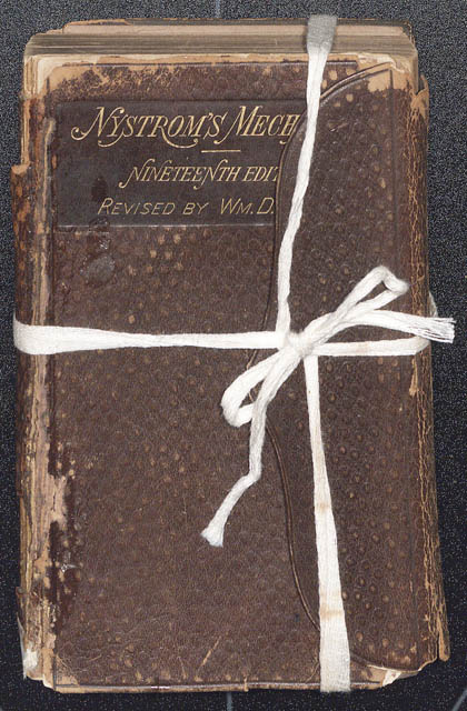 在上图中,我们有奈斯特罗姆的力学和工程学笔记本从1887年开始。绳子增加了一点魅力,包装精美,就像一个小礼物,但它确实有一个目的。如果没有线,书就会暴露在书架上,因为我们可以看到下面的图片,书的皮革封面已经从书脊上裂开了。