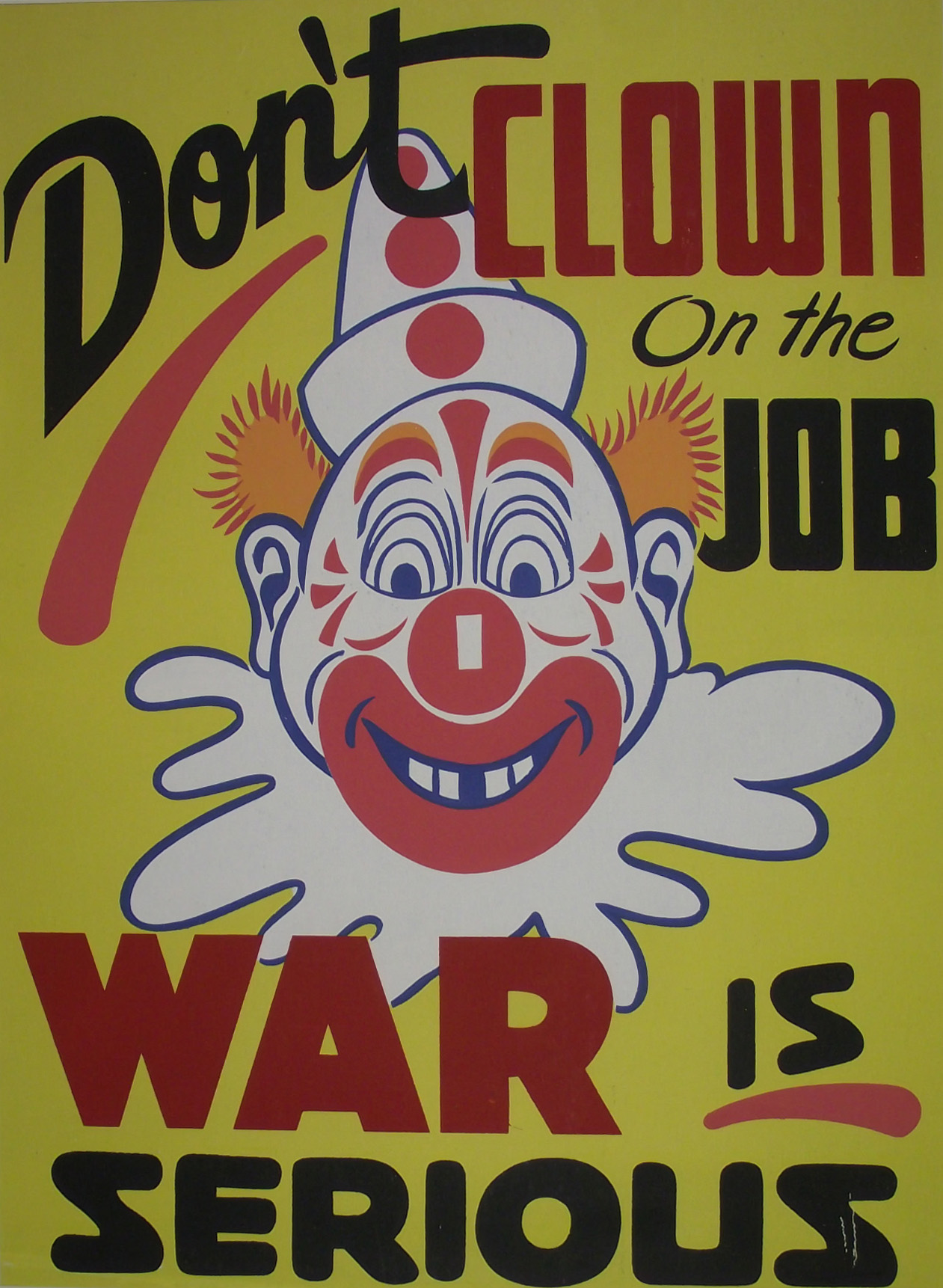 第一张海报是1917年的海军招聘海报,由艺术家肯尼昂Cox完成。第二次是纽波特新闻造船和干船公司悬挂的非常明亮的海报,鼓励工人保持工作。小丑有点令人毛骨悚然,但然而,这是一个很棒的海报。第三名是1932年的俄罗斯海报,最近梦幻般的志愿者为我翻译。我并不完全确定为什么海报的制作,但可能是庆祝俄罗斯太平洋舰队的创造。