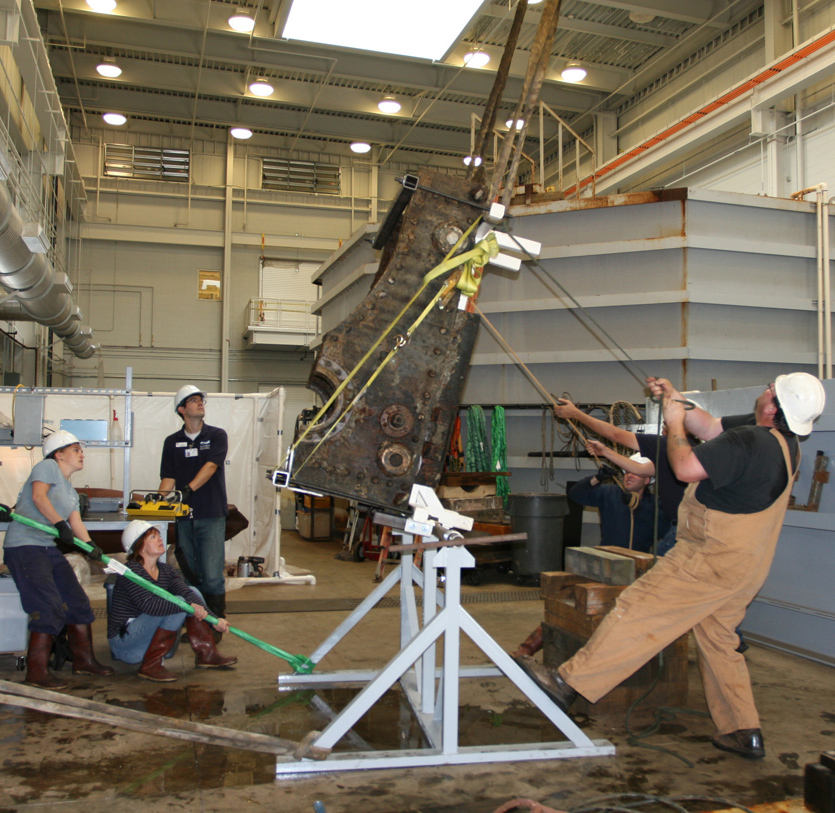 There are very few facilities in the world that have developed an expertise in moving and conserving extremely large and fragile archaeological materials. The Mariners’ Museum is fortunate to be a leader in this field. Here are a few pictures of our efforts to move large, heavy, and complex artifacts recovered from theMonitorNational Marine Sanctuary.