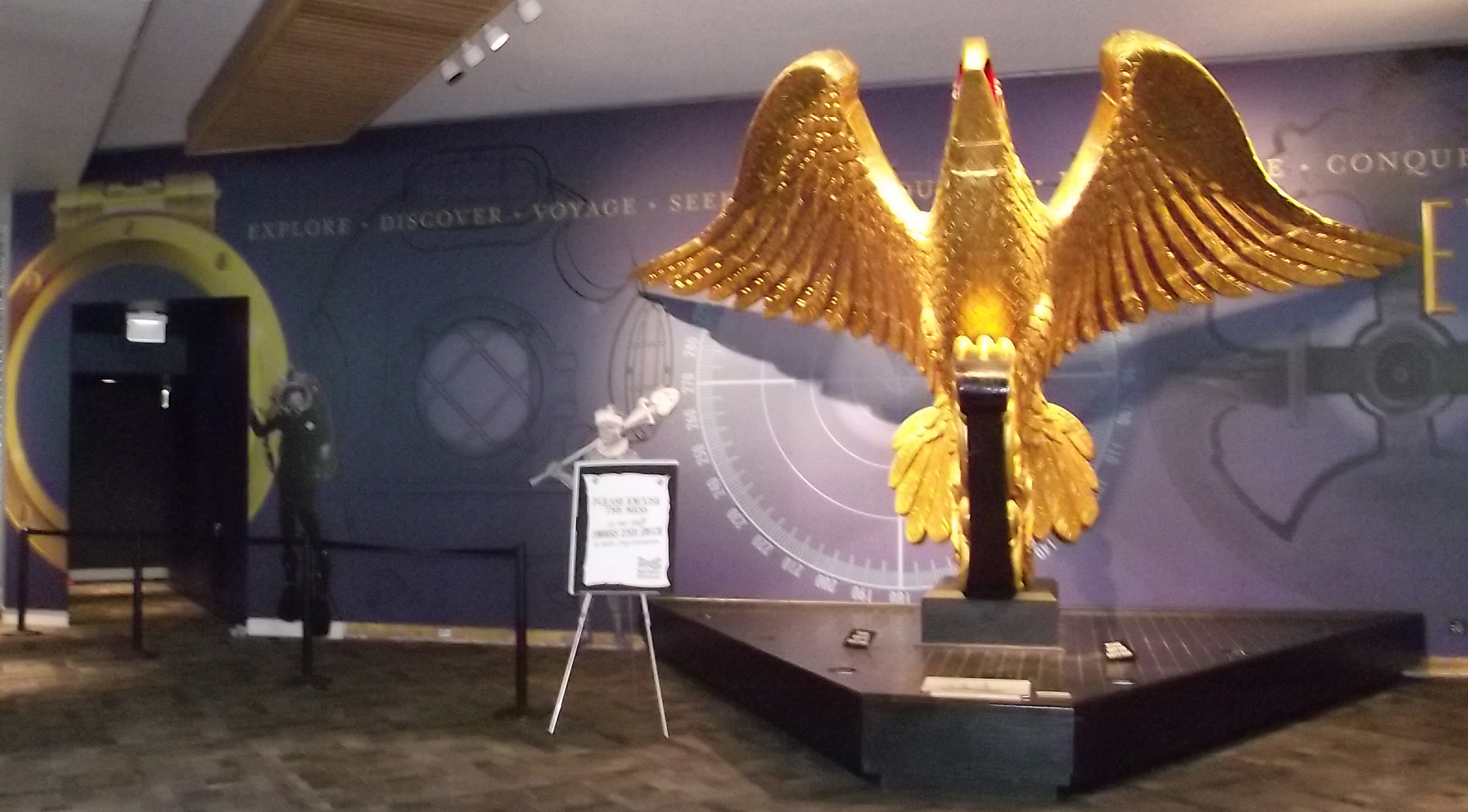 集合 打开我们的鹰 通过雷切尔·康利 贴在2014年3月14日,2015年11月27日 几周以来,我发布了关于我们的USS兰开斯特鹰的形象,因为我们正在包装不那么小的家伙,我们称之为“油管袋”。这样做的原因是老鹰后面的墙(见上图)将被移除,这样就可以建立一个新的图形。这是一个非常必要的改变,因为墙壁是自90年代以来一直竖立的肮脏的蓝色地毯。 这只美丽的鹰是由约翰·贝拉米雕刻的,在制作过程中,为了保护它免受碎片和灰尘的侵袭,它被包裹在塑料中,耗时数周。现在工作几乎完成了,今天早上我们无法打开鹰的包装,让每个人第一次看到可怕的新图像!!