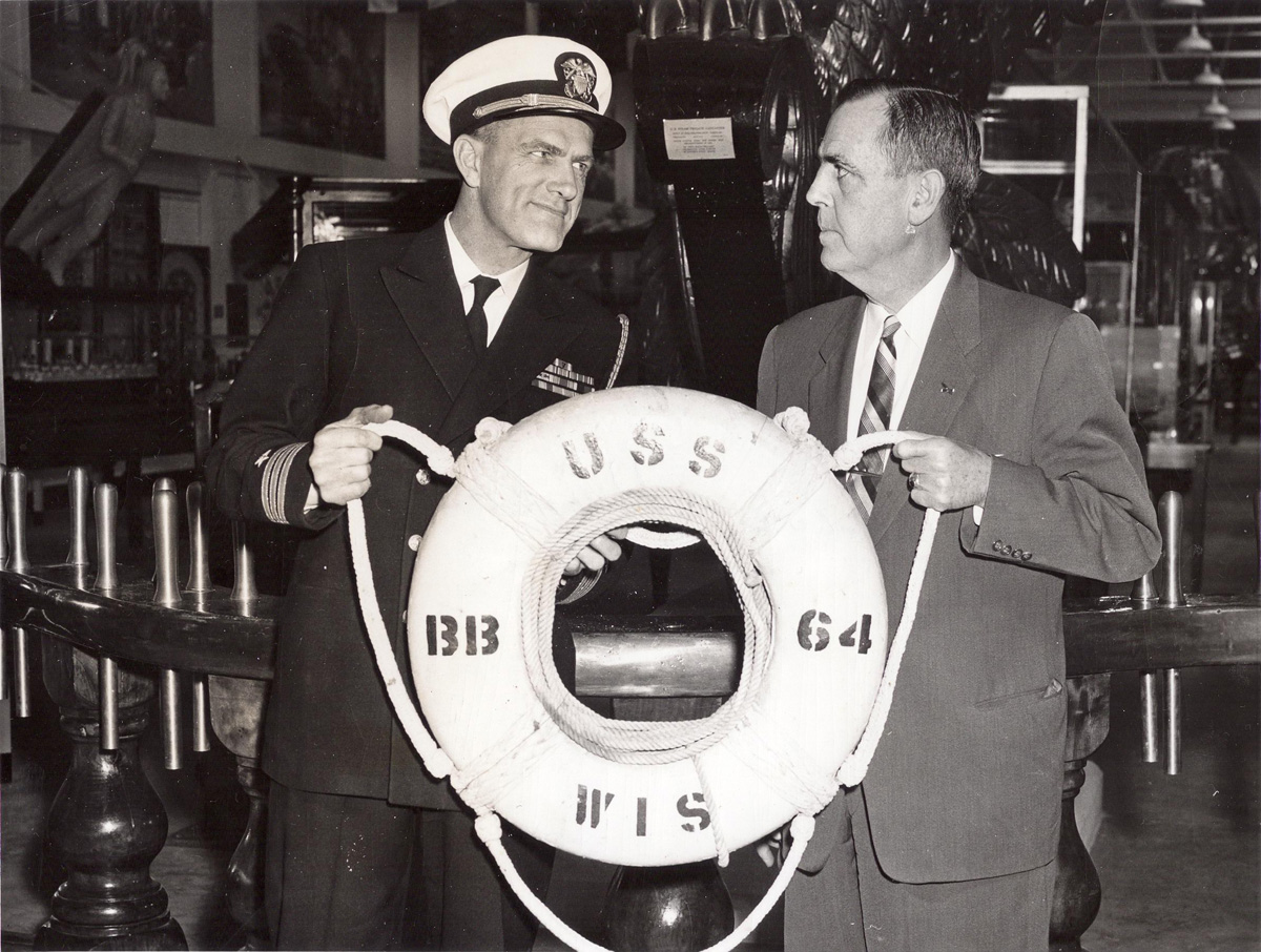 下一张图片显示的是海军上将西尔维斯特和一名军官从美国军舰上被吊死威斯康辛州.不知道照片里到底发生了什么,但看起来好像左边的人讲了一个笑话,而右边的人并不欣赏。威斯康辛州现在在诺福克休息,人们可以在这里探索它的甲板。