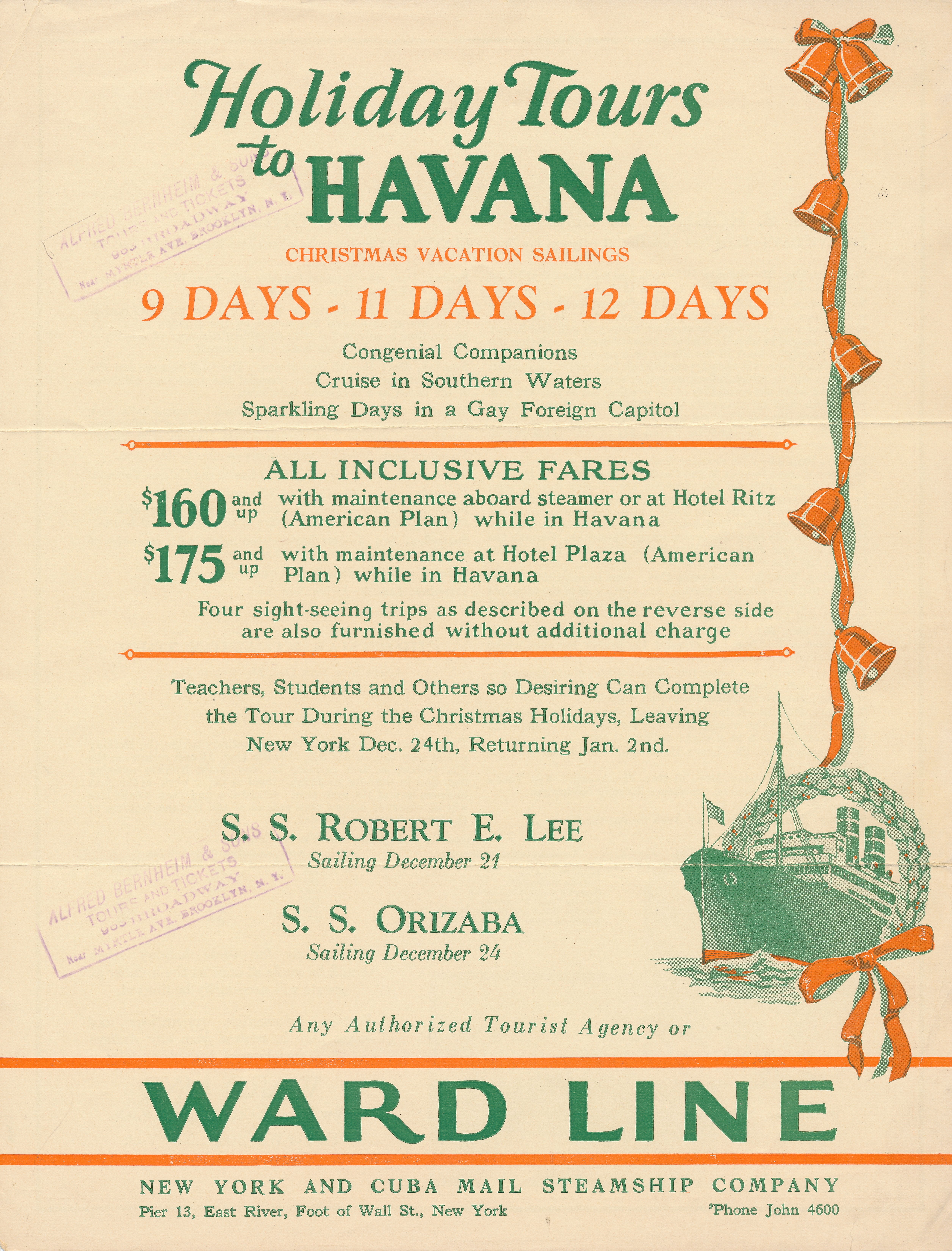 集合 返回偷来的材料 通过雷切尔·康利 贴在2014年7月23日2015年11月27日 我已经有一段时间没有报告被盗物品的归还情况了,但我很高兴地说,它们还在继续出现。有些人非常善良,送来了额外的作品来帮助我们重建收藏。这是上个月回来的一些作品。 蒸汽船的照片普韦布洛城(左)和罗伯特·e·李(右)。 沃德线的广告,哈瓦那假日旅游 另一件沃德线的作品,一本小册子小丘城堡和奥连特,并附有一张来自小丘城堡的甲板上跳舞。舞台太棒了! 1964年美国航空母舰发射时的宣传册。 太平洋轮船公司的阿拉斯加游船手册。 女士意大利小册子与小甲板计划 瑞典-美国航运公司的小册子Kungsholm。