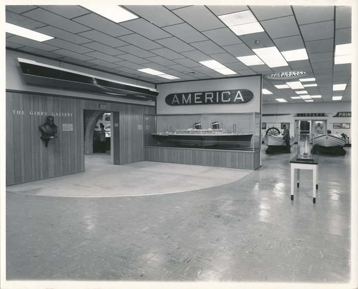 吉布斯画廊,奉献给威廉弗朗西斯吉布斯,是另一个我们有很多照片的展览(像国际南极展览)。这张照片(1978年)展示了画廊入口的SS模型美国前面和中心。毫无疑问,书中有很多关于吉布斯设计的另一艘著名船SS的信息美国.