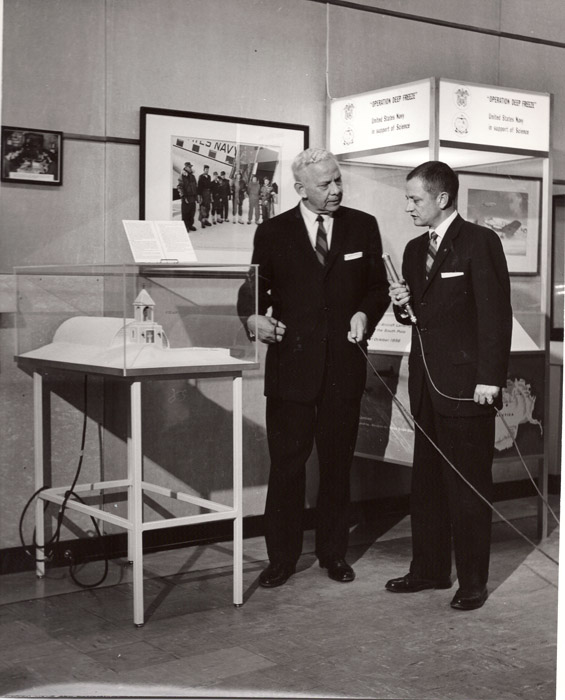 我相信我以前也贴过其他关于我们的国际南极展览的照片,但这一张(1963年1月23日)展示了海军上将Dufek正在接受13频道的采访。