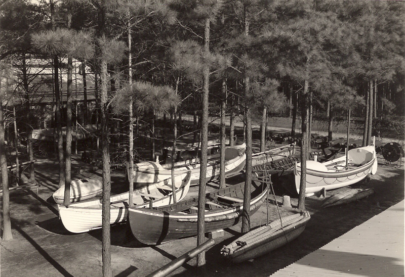 在他们不再把我们的船放在湖里之后,他们把船放在我们的院子里,在那里它们更容易被看到,正如这张1940年的照片所示。现在它们在我们的国际小舟中心愉快地展出。