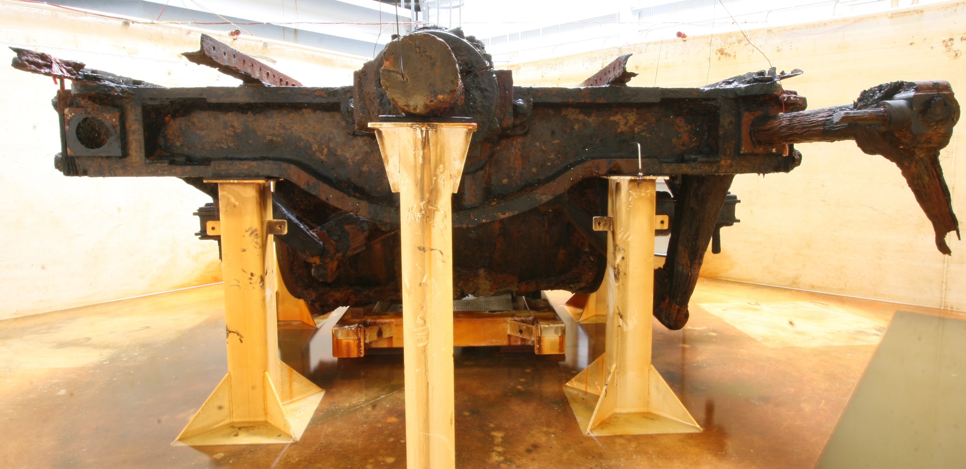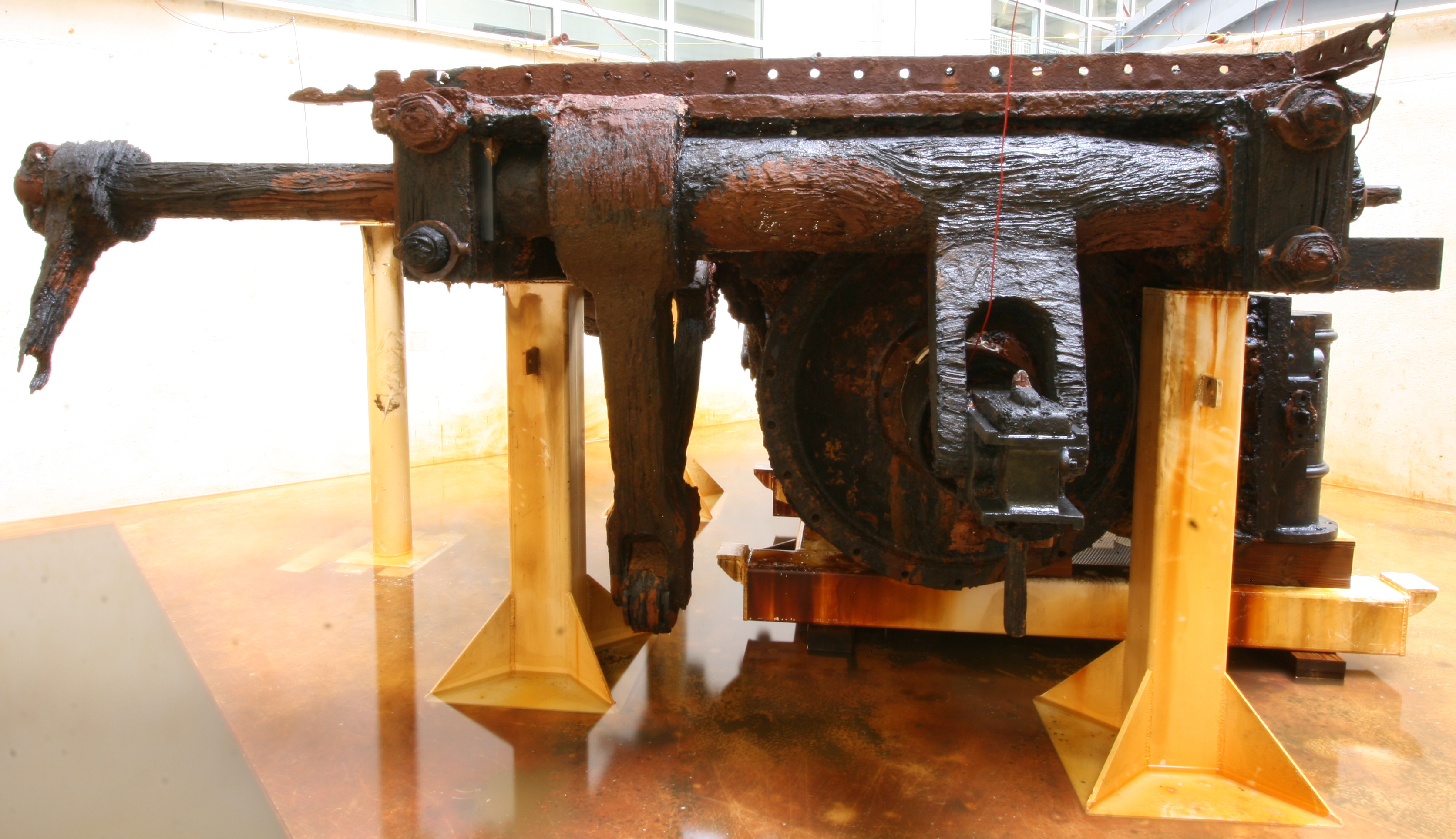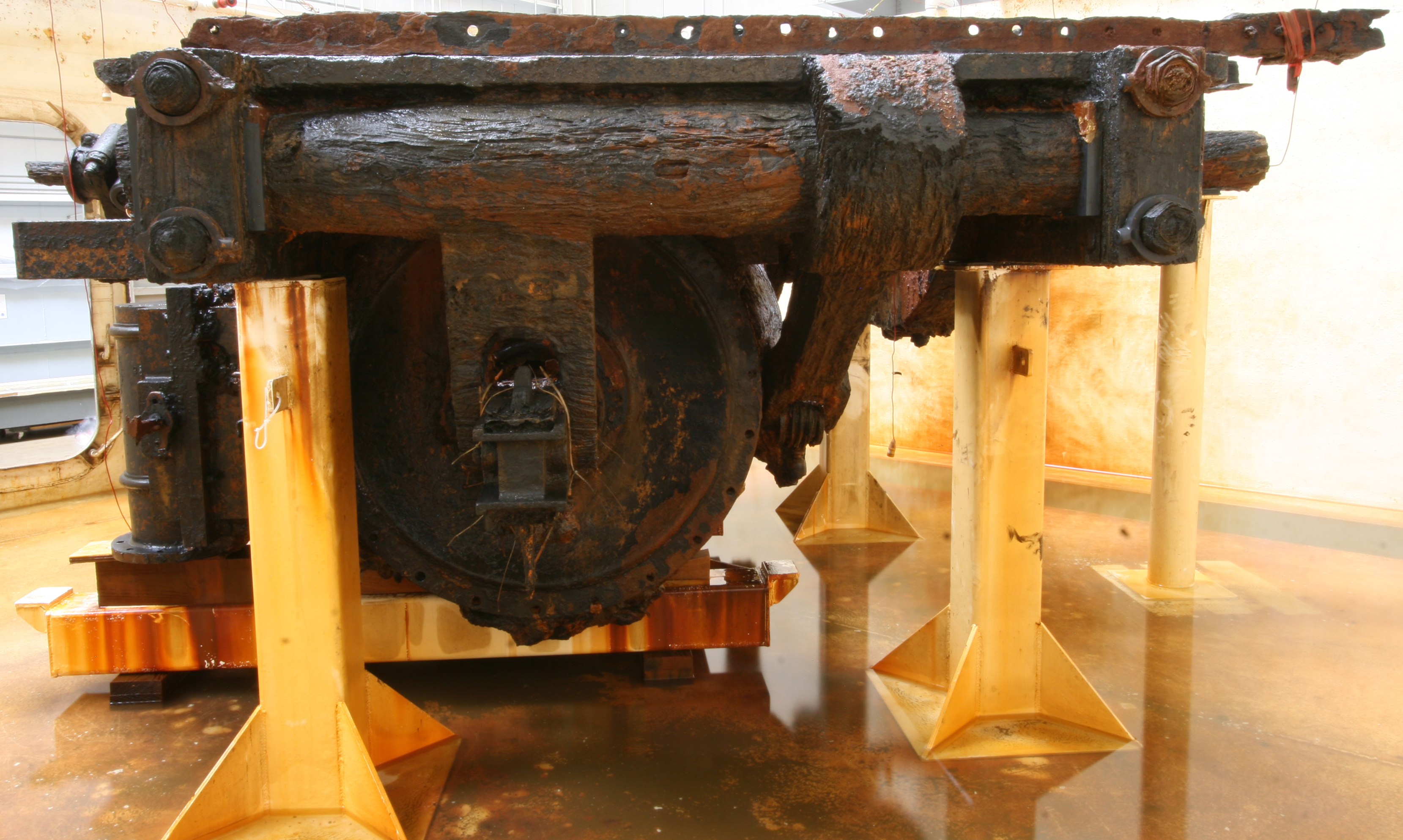 Paul, thanks for chiming in! We have already partially disassembled many components of the main steam engine, with a particular focus on separating copper alloy components from iron components. We also find disassembly to especially important to facilitate more thorough chloride removal during desalination. We also have every intention of ultimately returning the engine and its components to their original upright orientation within the museum gallery after conservation is complete in the lab. Hope you are well.