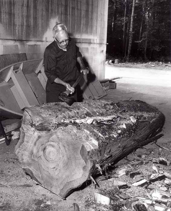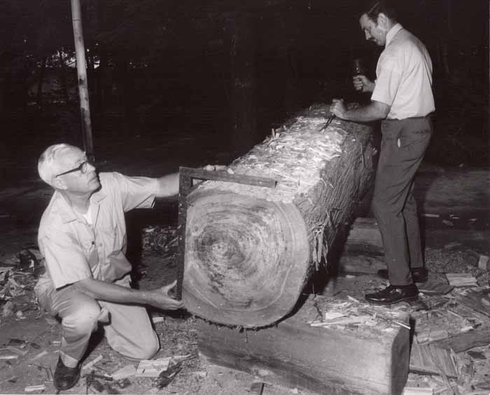 Back in the early 1970’s, our education department hosted a figurehead carving demonstration at the museum. Two museum employees were tasked with making the figureheads; Robert Brushwood (designer, artist) and Clifford Hancock (draftsmen, technician). Because these four photographs show the interesting development of creating a figurehead, I decided to post them all together, rather than four non-related images. This first one shows Brushwood created the figurehead image they wish to use.