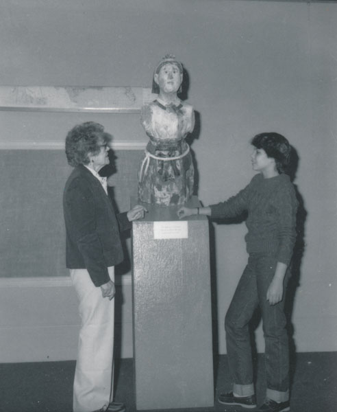 这两张照片显示了将我们的旧机构照片编目是多么重要。不久前,我在《有趣的事实星期五》上发表了关于我们的偶像伊尔玛·本特利的帖子,我们发现这尊雕像是伊尔玛(本特利)默里夫人年轻时的画像。更多内容可以阅读在这里.我们出色的志愿者梅丽莎已经完成了对照片的分类,当我翻阅这些照片时,我发现了一个文件夹,上面写着“Irma Bentley Program”。显然,当Irma在1983年参观博物馆时,她和一群学生谈论造船和雕像,如第一张图片所示。第二张照片是厄玛和她的曾孙女。