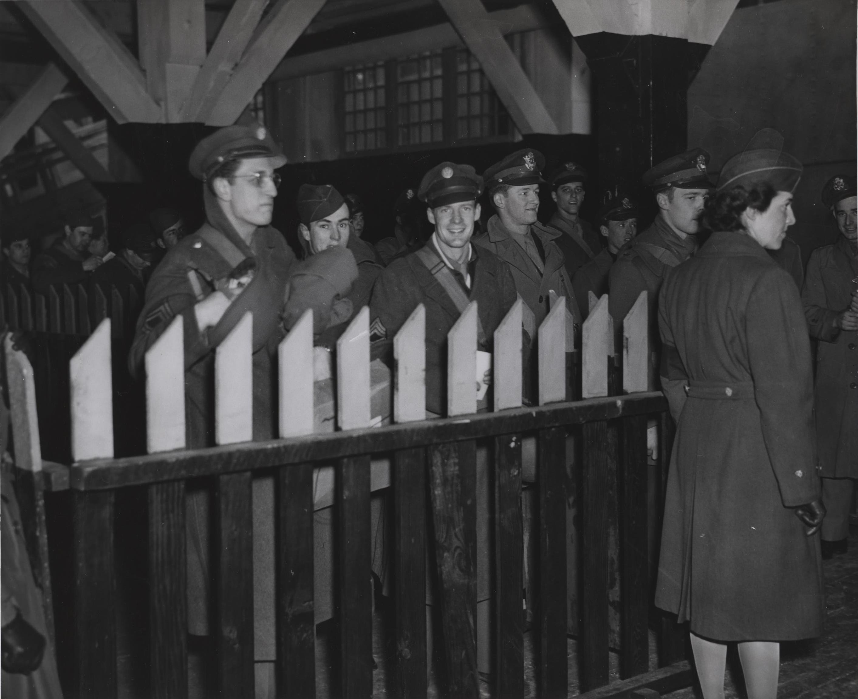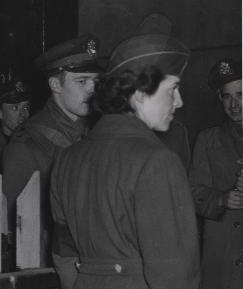 这里我们有一张典型的照片,来自汉普顿路港口登船集合,它描绘了一群士兵正在下船。具体地说,这是一群陆军空军轰炸机飞行员在1945年2月登上“约翰·r·布鲁克将军号”运输船,他们轮流回家。从照片上的说明我们知道其中一个是哈里·c·斯塔布斯中尉。