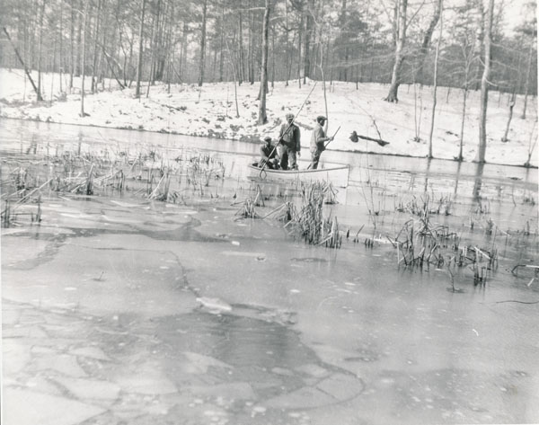 这张照片拍摄于1932年12月20日,在鹿园的湖面上破冰