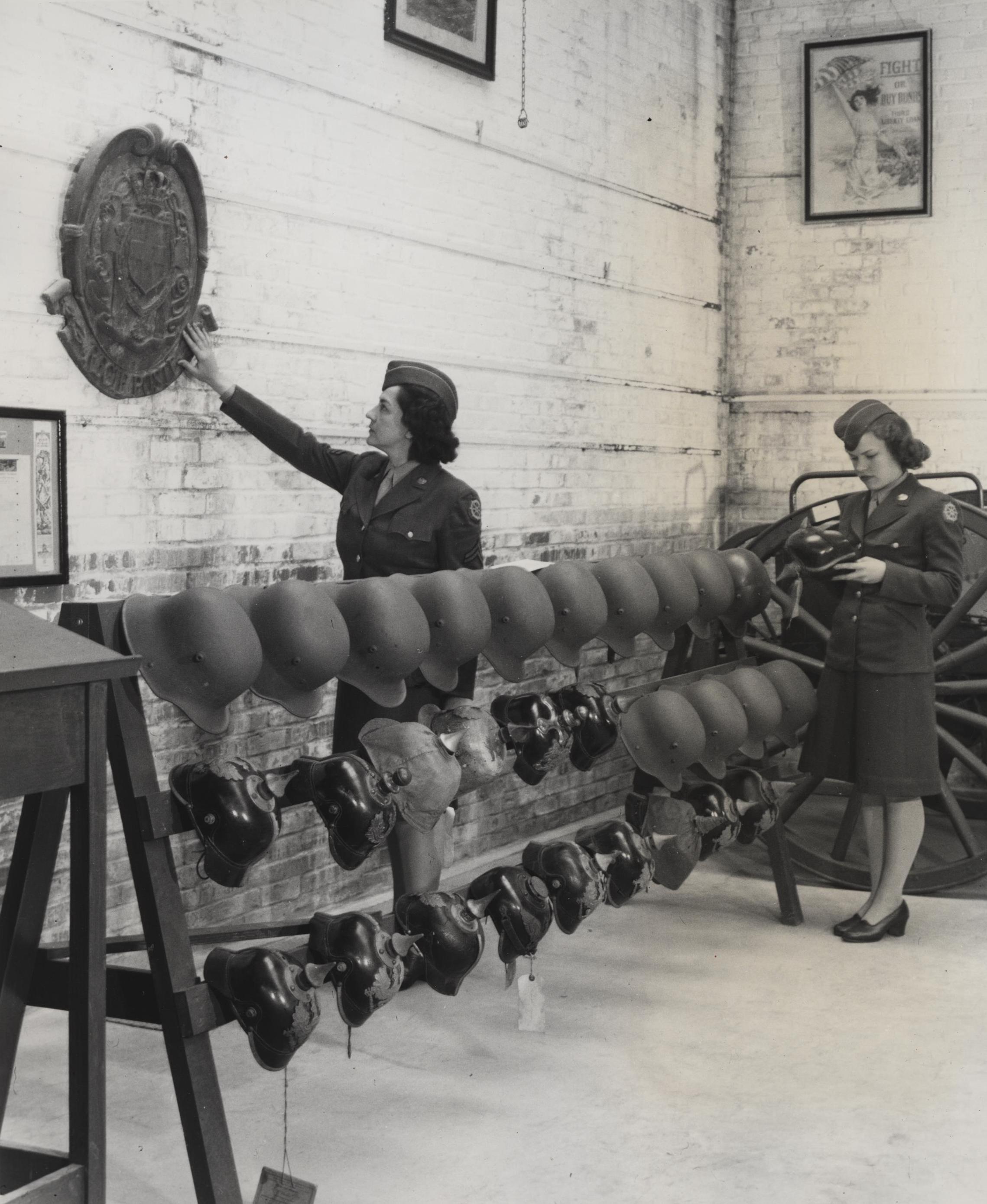 我们很高兴地在老美国退伍军人纪念博物馆(American Legion Memorial Museum)里找到了一组拍摄的公关照片。就像许多二战公关活动一样,他们起草了一对上镜的WACs作为该系列的模特。通过列兵多丽丝·格雷戈里和下士玛丽·布拉斯韦尔的眼睛,这些照片让我们得以探索战争博物馆在20世纪40年代的一些藏品。特别令人感兴趣的是欧洲和太平洋战争遗留下来的一些遗迹。