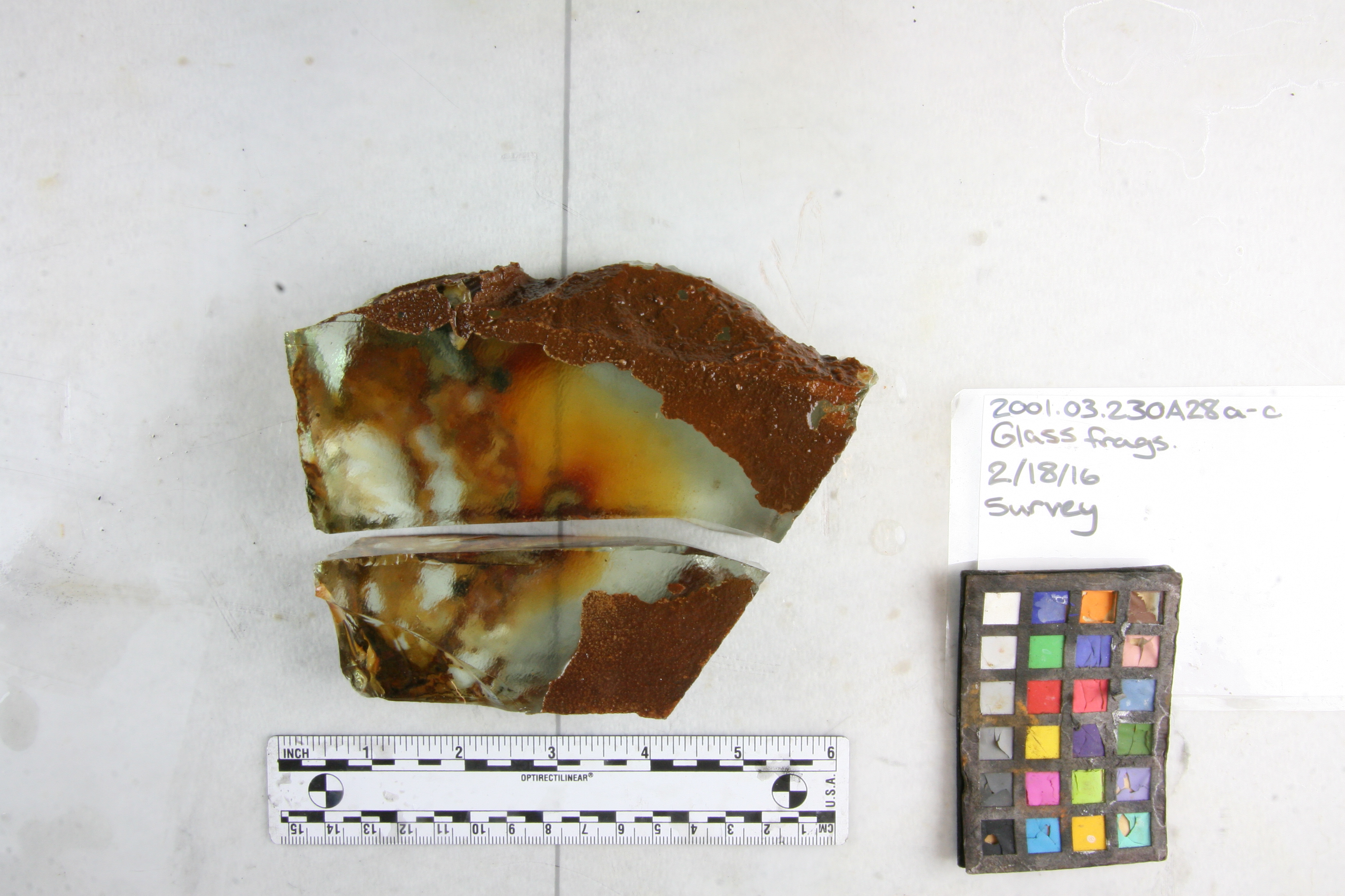 在过去的一个半月里,威尔、迈克和我打开了300多个集装箱,检查所有等待保护的小型无机文物。大多数是铁和铜合金,但也有其他金属和玻璃。调查的目的是评估个别文物的状况,并创建一个记录的当前状态的收藏。这让我们能够区分优先级。如果某样东西非常脆弱,而且正在积极腐蚀,我们就应该在它进一步衰退之前,把注意力集中在它身上。相反,如果某物处于良好的状态,我们希望在丢失任何信息之前处理它。我们所有的有机物质都经历过类似的情况2015年的调查.当我们定期签入时,它为对象在其存储生命周期中建立一个时间轴。保护需要时间。关注整个收藏是很重要的,尤其是那些没有积极治疗的。
