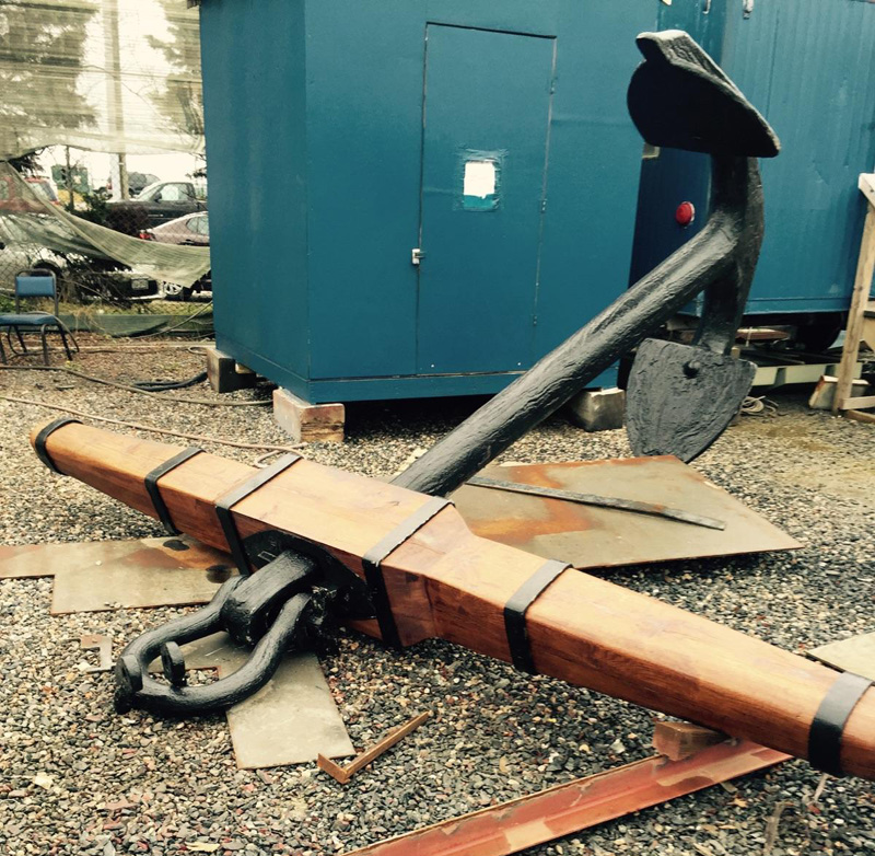 那对开车的人来说一定是相当大的景象!在找到这篇文章后,我们能够匹配它到我们的锚DA 63,一个海军锚与一个木制股票约1850年。这是南方钢铁公司的礼物。值得庆幸的是,在事故发生后,它被送到了博物馆,而且看起来磨损得没有那么严重。