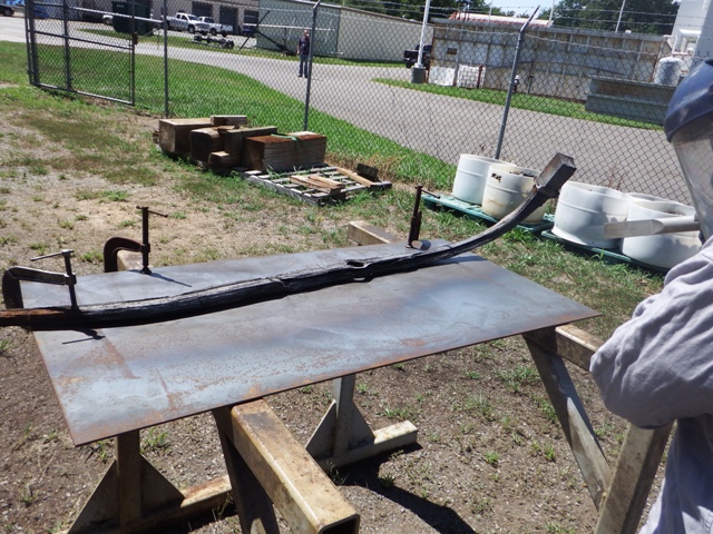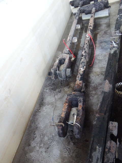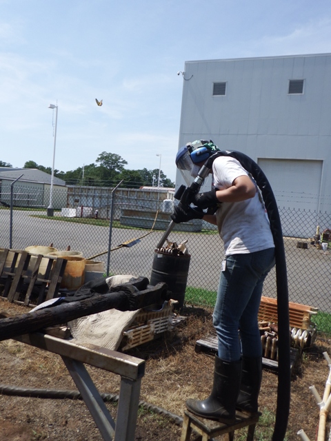 坦克基地的工作进展得很顺利。在1号储罐和铜合金文物一起待了一周后,我们用新溶液重新装满了储罐,用防水布盖好,然后进入6号储罐。6号和5号坦克(我们本周进入了这两个坦克)保存着锻铁制品。他们都收到了一个通过干冰爆破清理,这迅速成为我最喜欢的新东西之一。