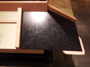 此外,大多数博物馆都有工作馆藏。你可能参观过一个博物馆,工作人员让你拿一个东西。我们喜欢把物品从传统的玻璃陈列柜后面拿出来。选择这些器物是因为它们能够经受住传递。它们既可以被清洗,也可以将预期的损坏和磨损降到最低。其中一个例子是铁船体板监控展览。它是一种坚固的人工制品,上面有一层保护涂层,可以承受每年成千上万只手的触摸。