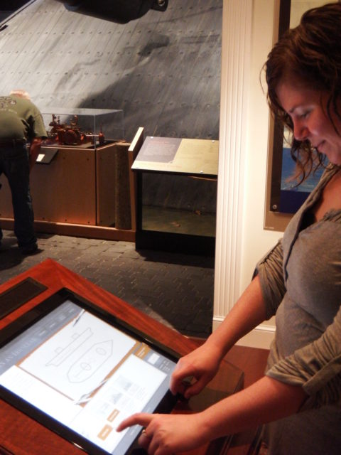 我最喜欢的选择是替代品。在里面监控画廊,我们精彩的展品设计部建造了前甲板的复制品维吉尼亚州军官的宿舍在监控.游客们可以在船上行走,想象船上的生活。他们还可以触摸屏幕播放重现者的视频。通过在被栅栏围起来的艺术品附近举办带有明确定义的动手活动的互动展览,它强化了这两者是不同的,并且应该被这样对待的想法。