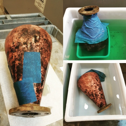 Lesley一直在研究来自同一泵的橡胶垫圈,Kate负责完成其他铜合金部件的处理。泵的主要铸铁件和锻铁件在过去已经被几个管理员处理过,包括威尔。事情正在发生,很快,右舷的沃辛顿泵将完全保存和稳定!今年特别令人兴奋的是,美国莫尼特航空母舰的沃辛顿泵被美国机械工程学会(ASME)指定为具有历史意义的机械工程地标!看看《每日新闻》发表的关于它的伟大故事吧.
