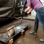 上星期三对我们的团队来说是非常激动人心的一天,因为我们有东海岸的考古保护人员同行参观了一整天!来自马里兰考古保护实验室的Nichole Doub,克莱姆森大学修复研究所的Johanna Rivera亨利号以及来自威廉斯堡殖民基金会的艾米丽·威廉姆斯也被介绍到了干冰爆破的乐趣中。我们的项目经理,威尔,致力于建立理想的参数来清理美国航空母舰上的锻铁制品监控过去几年用干冰收集的。在我们的同事访问期间,他分享了在这里开发的过程,并建议他们在未来决定投资于这种清洁工具时应该遵循的程序。在这一天,人们就文物的原始表面、活性腐蚀过程和其他pH值相关问题进行了许多令人发呆的保护讨论。激动人心的! !