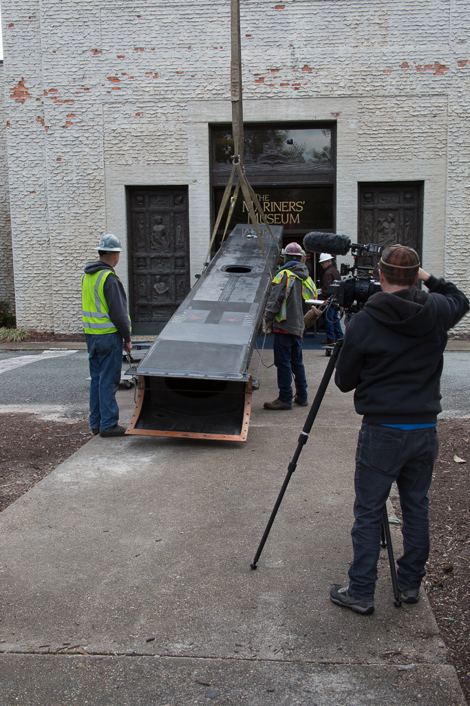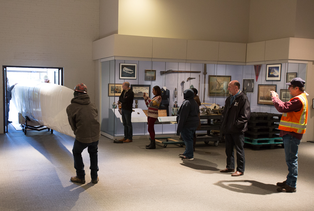 首先要卸下的是中央吊舱。非常合身,但他们还是设法把它穿进去了。船只博物馆的小门不太好用。接下来是前后的横梁,其中一根横梁太宽了,必须穿过另一扇门,并以一根头发之差绕过一个拐角。这东西太大了!然后是j翼和一些较小的碎片。