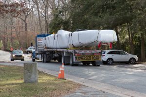 下午晚些时候,第三辆载着两艘船的卡车到了。当他们被带进大楼时,有很多观众。当然,当我们开始打开第一个船体时,我们发现…