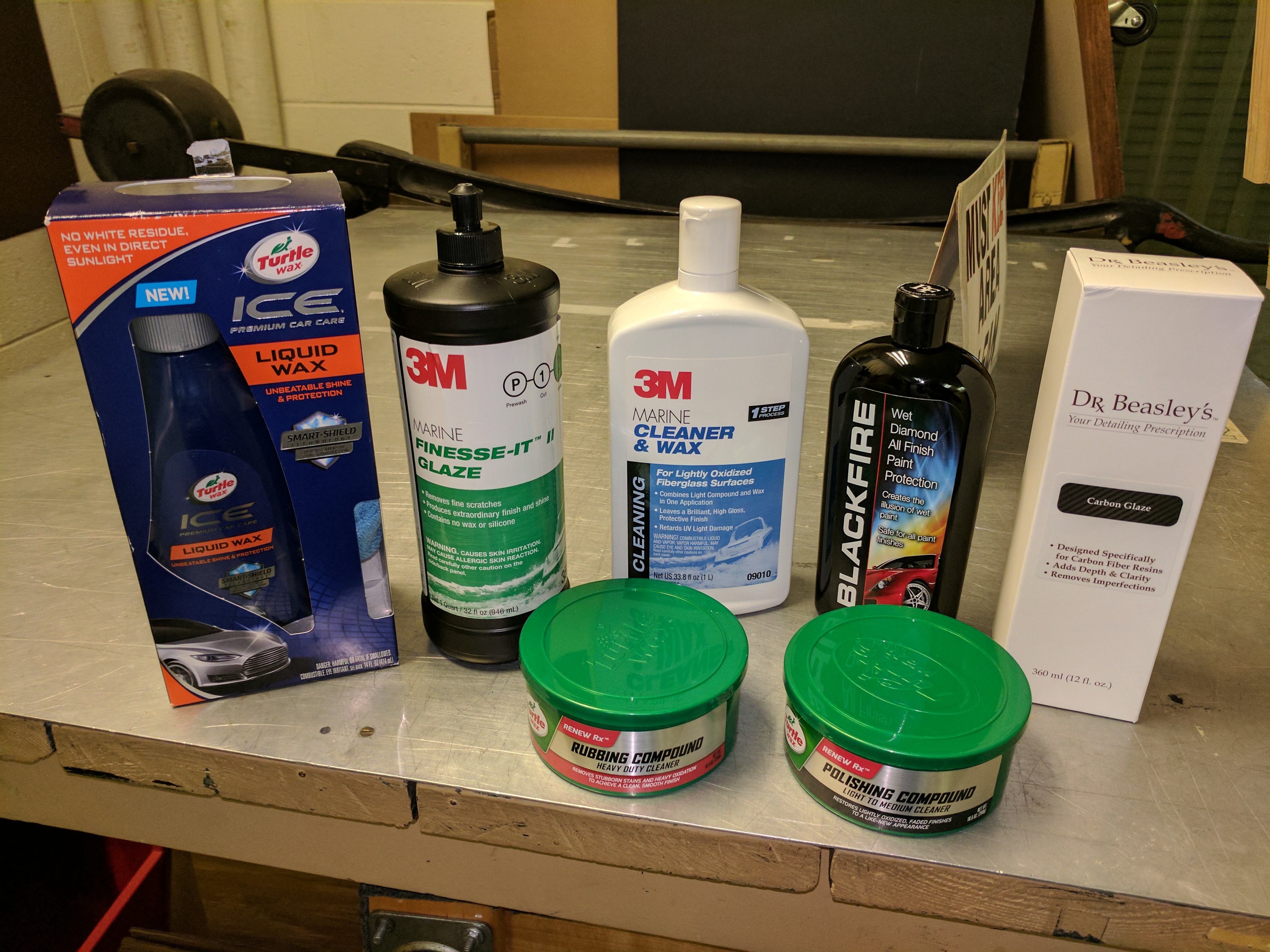 在装配项目的过程中,莱尔斯和我开始着迷于带回美丽的光泽完成的可能性。假设我们只是遇到了时间和风化问题,我们去了West Marine,买了一些基本的清洁和上光产品(3Ms Marine Cleaner、Wax和Finesse-It II Glaze)。我马上就去工作了,但无论我如何使用这些产品,它们都没有任何区别。另一些人建议用软擦法,另一些人则建议简单地用一种摩擦或抛光的混合物——什么都不用做,不会有任何改变。