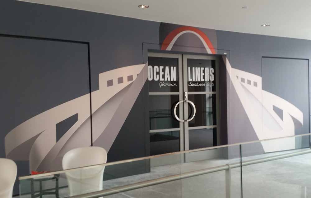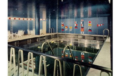 大量物品来自SS美国被使用。在上面的图片是一个装饰性的灯面板从私人餐厅在长廊甲板。不幸的是,我的相机在灯光下并没有展现出它的美丽。下图的主要特征是来自一流舞厅的三个玻璃板。在它们的前面是一个休息室的鸡尾酒桌,在它的左边(有点模糊,因为它部分被切断了)是一个小台灯,用于头等舱和客舱的餐厅。
