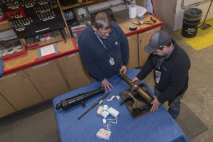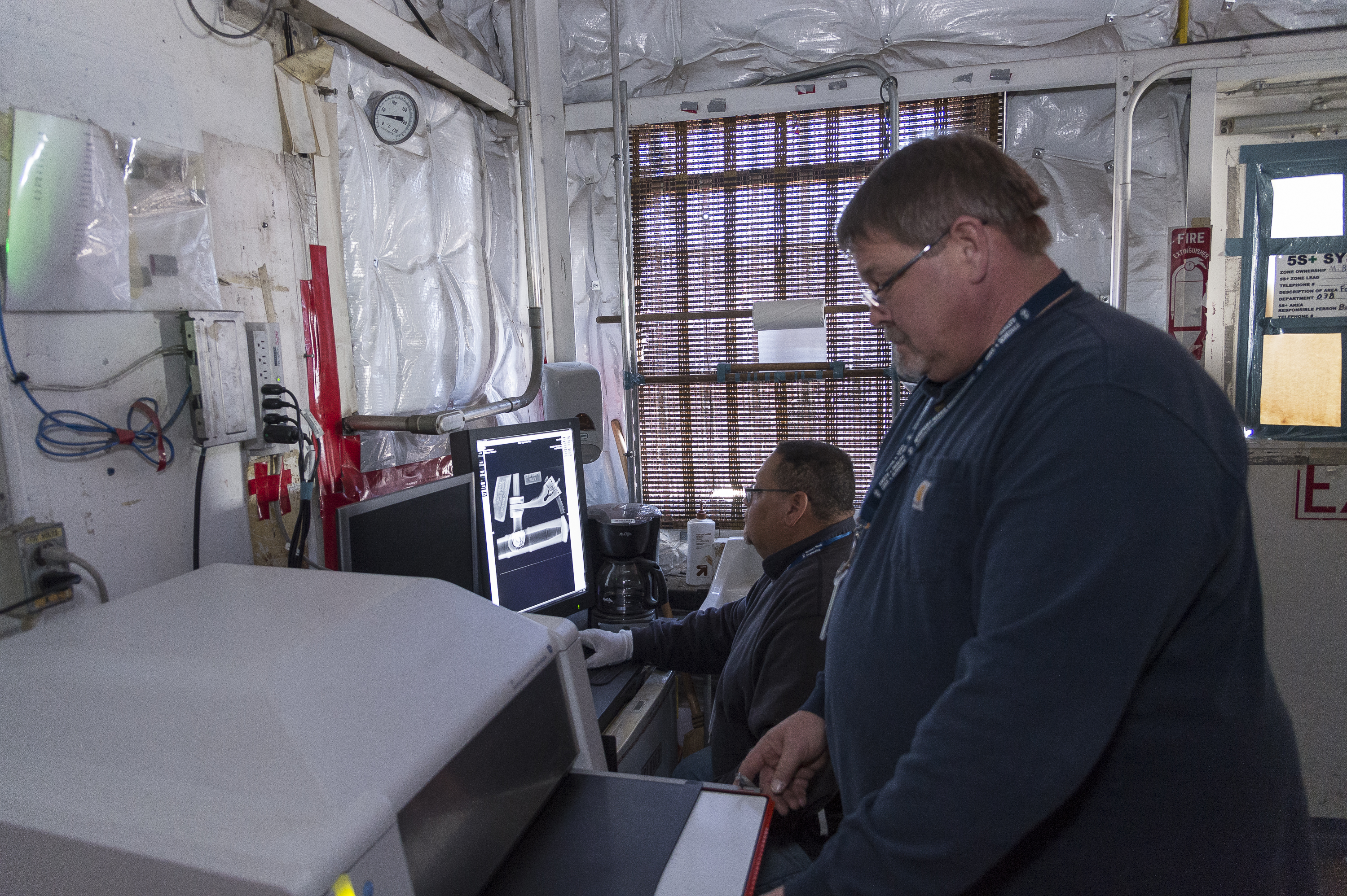 除了协调一切的JJ,团队还包括Dean Lavinder(操作GE CR扫描仪的人);兰德尔·霍尔(负责GE Vision CR系统的运营);Mike Bryant(负责协调铸造作业);凯文·沃克(他设置了CR镜头并运行了Foundry Linitron);唐娜·布兰肯希普(Donna Blankenship)(她是首席检查主管,曾帮助将这些文物带回博物馆);NNSBD摄影师约翰·惠伦为我们记录了整个过程。