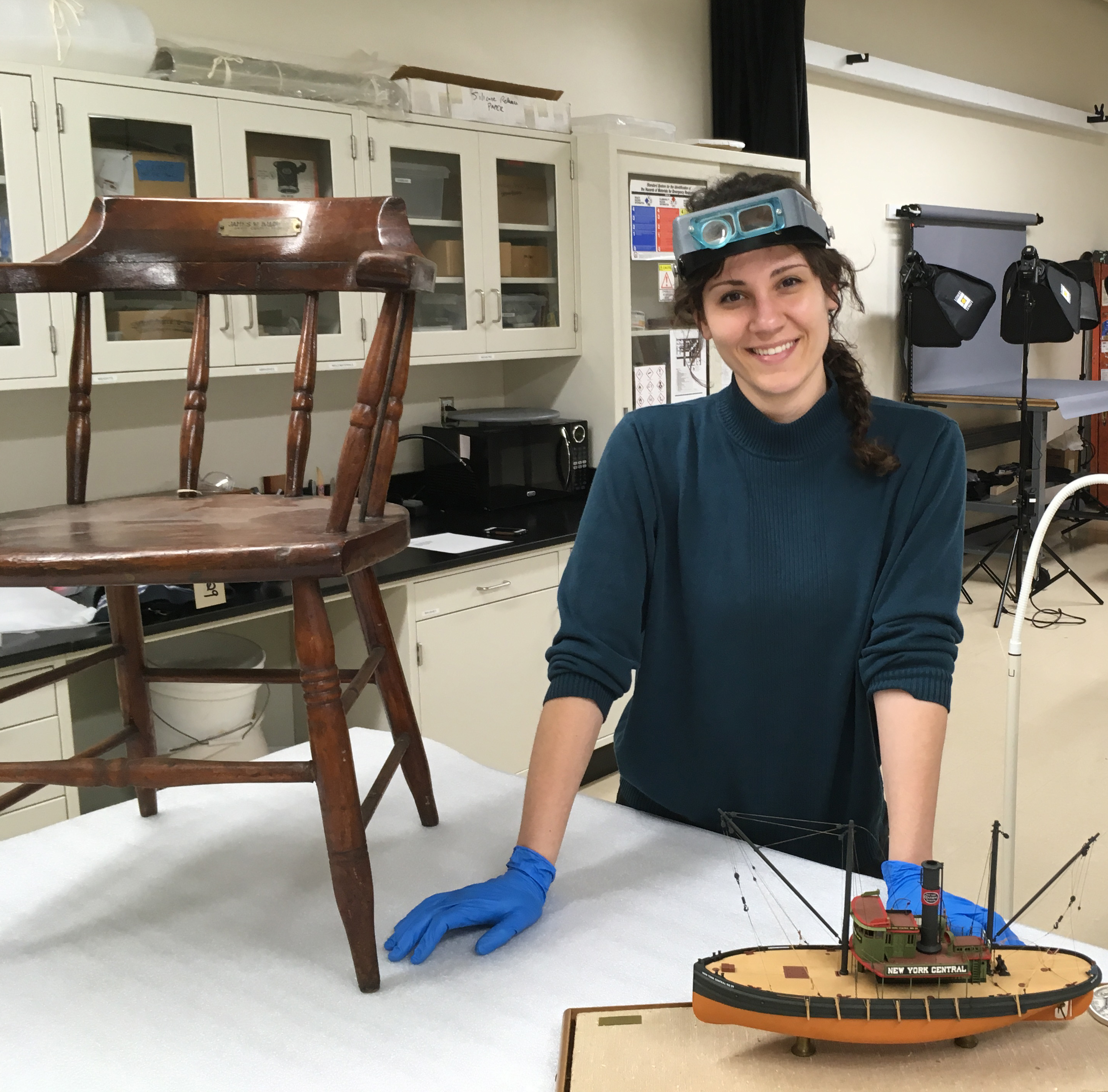 你好有水手!我想是时候在博客上介绍我自己了。我叫佩奇·施密特,是博物馆一般藏品的助理文物管理员。当我在巴顿保护中心工作的时候,我身边的考古保护人员都致力于保护监测仪,而我自己却不在监测仪上工作。我的工作是保护和照顾我们令人印象深刻的收藏中的18000件三维艺术品!