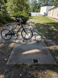 虽然杆子很久以前就消失了,但8字曲线仍然存在,而且,正如我提到的,目前为博物馆唯一的自行车架提供了休息的地方。令人惊讶的是,工作人员继续回答那些记得参观过博物馆并看到它的人关于正午杆的问题。每次有询问的时候,工作人员都很难讨论它,这就是为什么我决定通过把剩下的东西加入收藏来解决这个问题。几周前,蒂娜帮我把自行车架我们可以好好看看8字曲线,找出最好的方法来记录这个问题时,我发现自己的位置必须解释我在做什么霍华德(博物馆的总统的人还没见过他)。