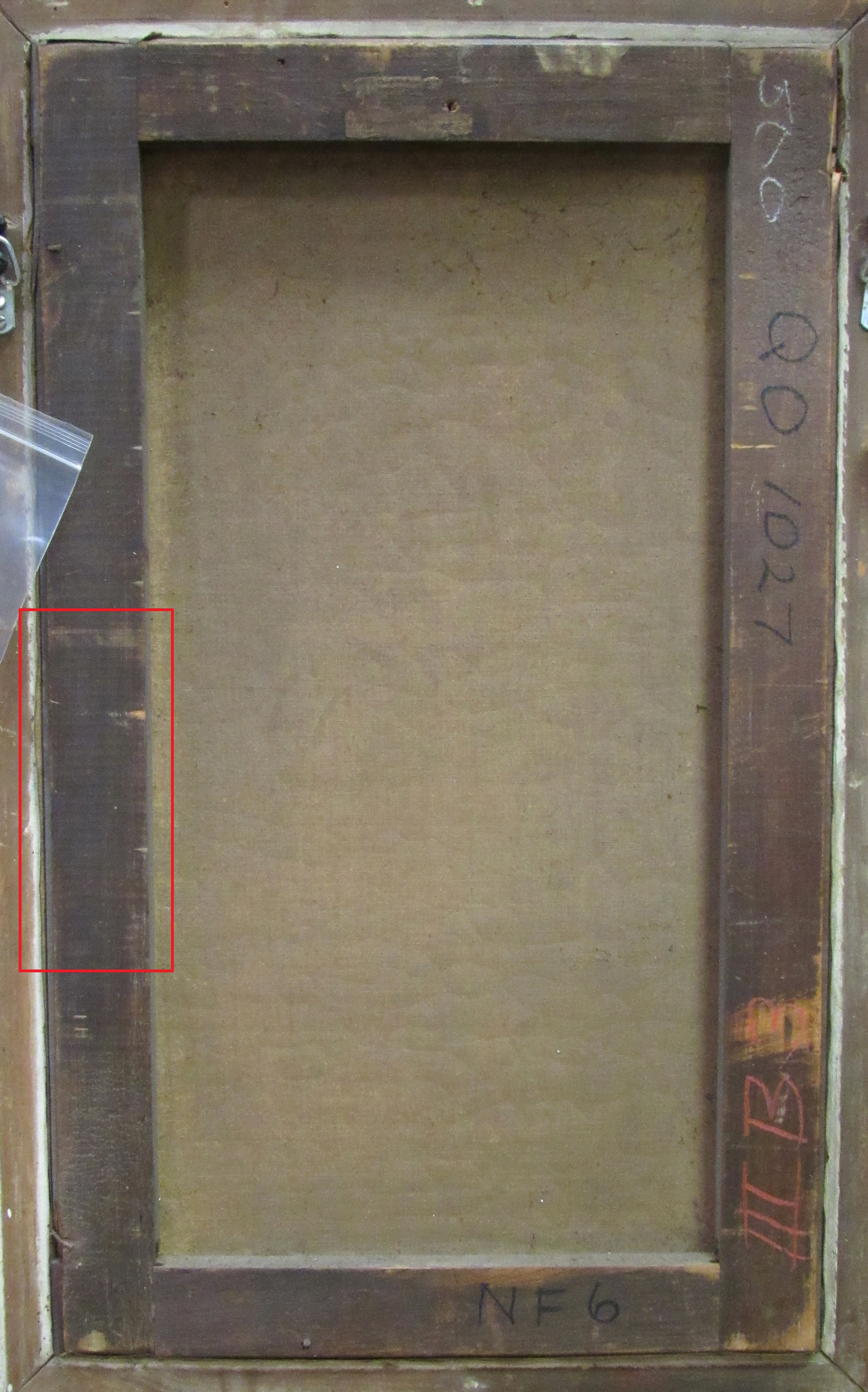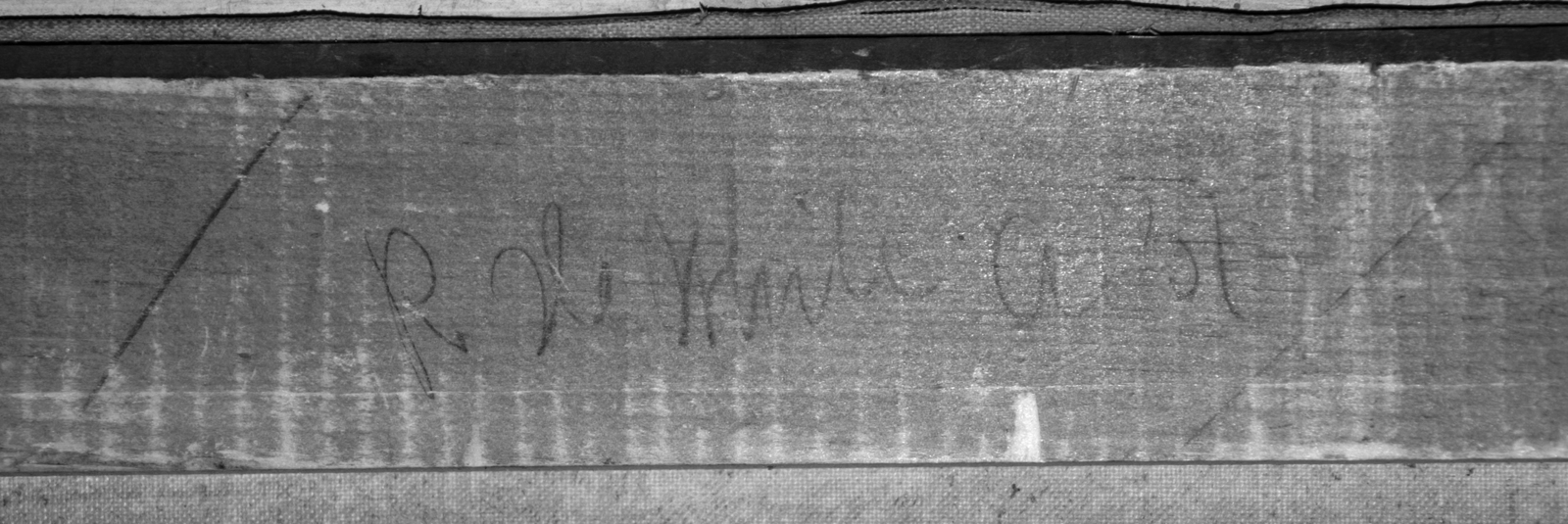 在下面的图片中,你可以看到收藏品中一幅油画背后的铭文。这幅画被带到保存实验室,是为了评估我们的藏品管理人员提出的一个完全不同的问题。在用我们的红外相机成像担架的过程中,揭示了肉眼不可见的铭文。收藏管理部门现在可以将这些信息添加到物品记录中,并调查铭文的来源,这可能与画作的出处有关。
