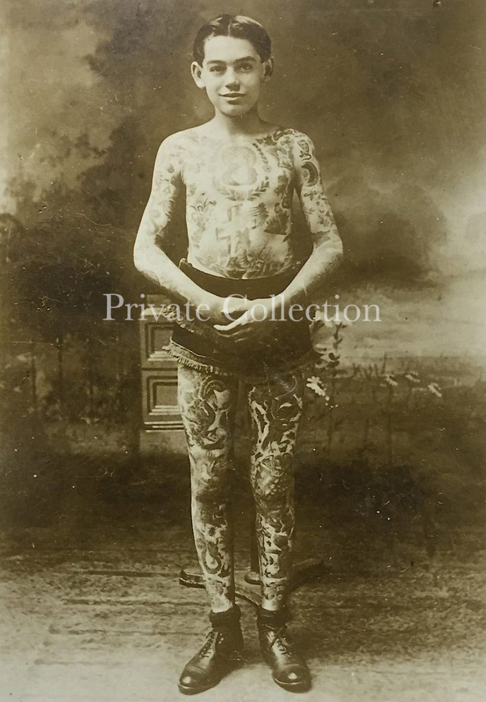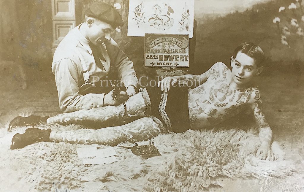 除了他的创新之外,瓦格纳还因为那些想要纹身的人成为艺术家而赢得了声誉,这些人中大多数是年轻的男孩,他们后来在杂耍表演和马戏中从事职业。瓦格纳有许多年轻人,他们是活生生的画布和练习作品。当时,没有任何保护措施阻止未成年人纹身,只要他们同意。唯一的法律是防止强迫儿童纹身。安迪同意让瓦格纳给他从头到脚纹身。