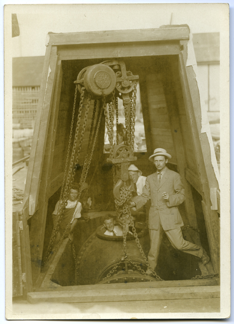 1912年,约翰·欧内斯特·威廉姆森(John Ernest Williamson)在费城唱片和弗吉尼亚人的摄影师和定期记者工作时,约翰·欧内斯特·威廉姆森(John Ernest Williamson)提出了试图使用他父亲的“海底工作”来拍摄照片的想法。在他的兄弟乔治(George)的帮助下,他扩大了工作室,并在管子底部观看港口,以方便相机。在他们在汉普顿道路的最初测试中,他们发现了water was so murky it limited visibility to just a few feet (Really? I can’t believe they were surprised by this our water isn’t exactly “tropical” looking around here! Sometimes you can’t even see further than two inches!). To extend visibility they engineering a bank of tungsten electric lamps so they could be turned on and remain lit underwater.