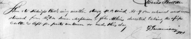 This past week, when making sure I hadn’t missed anything about a cat in the historical record, I found a source online which stated that the log book said one of the sailors deserted the ship with the ship’s cat (I won’t call out this source). I was shocked that I had missed that, so I re-read the log-book. Unfortunately, since this is hand-written, it can be quite difficult to read, and it turns out that this source mis-read the entry in question. Instead of saying that the sailor deserted with the cat, it says “At 11 P.M. Norman McPherson and John Atkins deserted taking the ship’s cutter [NOT cat, but written to kinda look like catta] and left for parts unknown so ends this day”. Whomp. No cat.