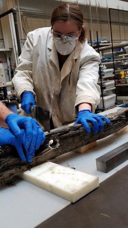 我的项目是评估发生在公主卡并调查潜在的处理方案。在我们的物质文化专家Hannah Fleming的帮助下,我们选择了几个小木材在这个项目中使用,这些木材对船的结构并不重要,如图4-5所示。