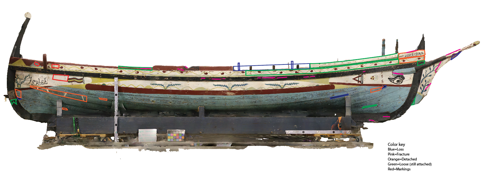 此外,历史研究在这一过程中也起到了很大的作用。例如,船舷上的木头已经磨损得很厉害了,因为那是把网拉到船上的地方。对于这一组成部分和许多其他部分,了解其历史有助于我们确定为什么会发生这种退化及其对该船作为渔船的历史的重要性。