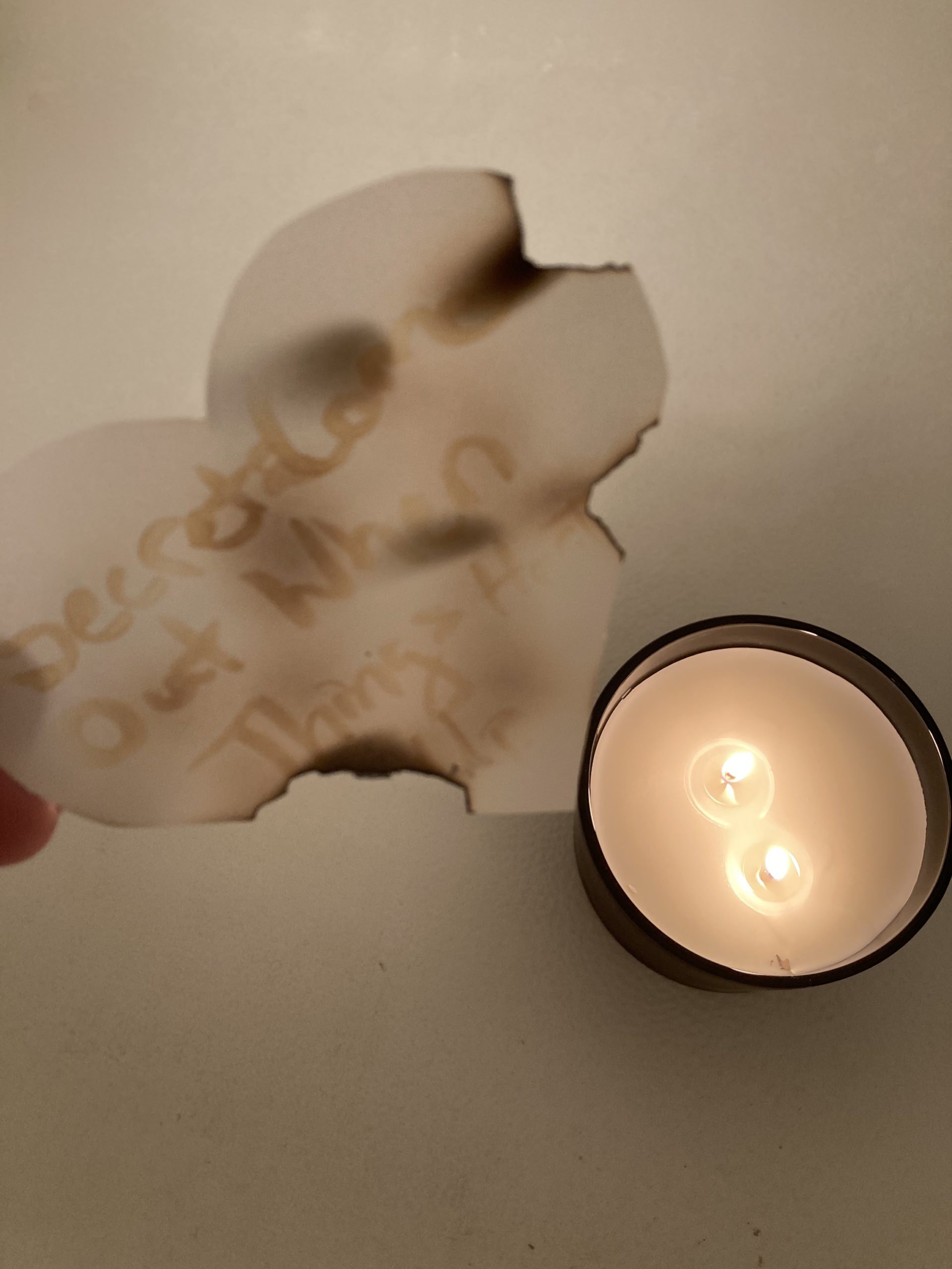 Text was going to say “Secrets Come Out When Things Heat Up”. Unfortunately the paper caught on fire a few times.