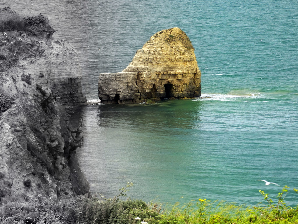 Pointe du Hoc is four miles to the west of Omaha. You can stand between the bombed out remains of German gun emplacements and the cliffs. Here the Second Ranger Battalion scaled the cliffs under heavy fire from above. Their mission was to capture a German defensive position that had large guns aimed at Utah Beach.