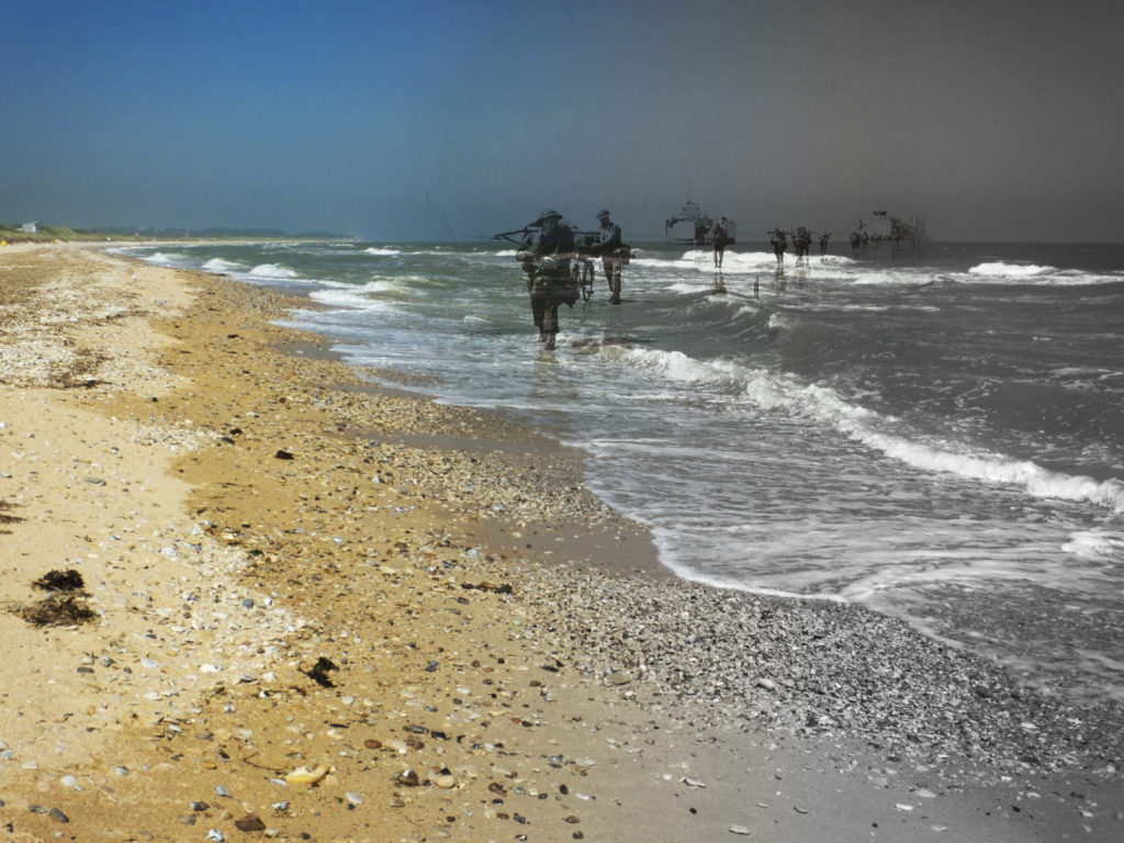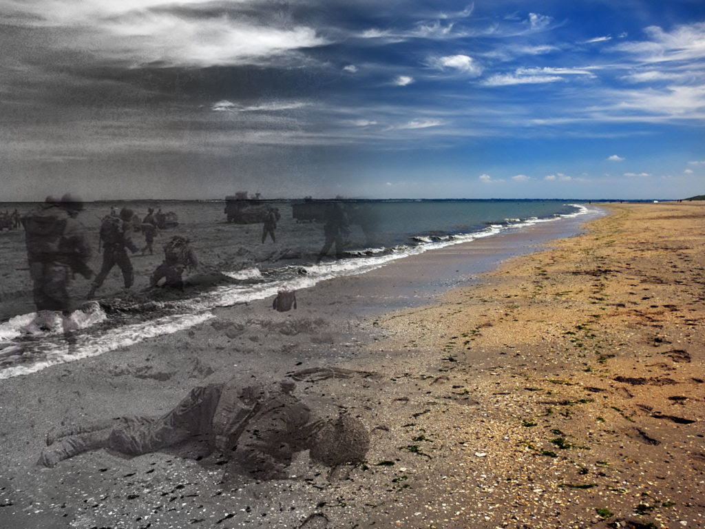 在整个50英里的诺曼底海岸沿途,都有记忆盟军牺牲的地方和时刻。作为一名摄影师,我对现代海滩和1944年发生的可怕战斗之间的对比感到震惊。大多数日子,海滩靠近空旷或充满了游客,就像战前一样。但是,冲浪线上的奥马哈海滩的图像与世界上任何其他海滩一样。一张照片并不总是传达出该地点的历史的感觉。它的故事。我希望我的图像传达这种对比。因此,我在1940年代的历史悠久的黑白图像中“幽灵”,并在2016年和2018年制作了自己的图像。