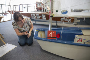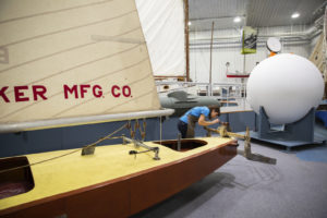 如果你在周四参观国际小船中心,你可能会发现物体保护员佩奇·施密特和我(暑期保护实习生)在船之间的地板上爬来爬去。我们没有像失明的威尔玛·丁克利那样丢了眼镜。事实上,我们正在对博物馆收藏的142艘小船进行保护调查。