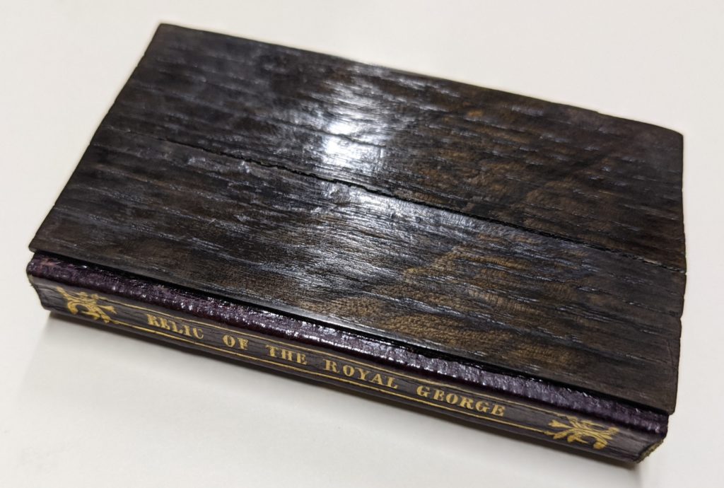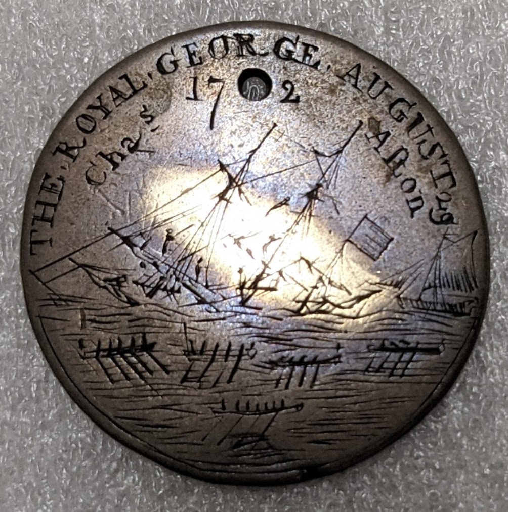许多物品都是从皇家乔治为英格兰和世界各地的博物馆收藏增色。在Mariners,我们很幸运地持有三份出版物,记录了货物的丢失和转移皇家乔治上面覆盖着帕斯利上校的船员从残骸中找到的木头。我们还有一个小银质奖章,可能是幸存者之一制作的。
