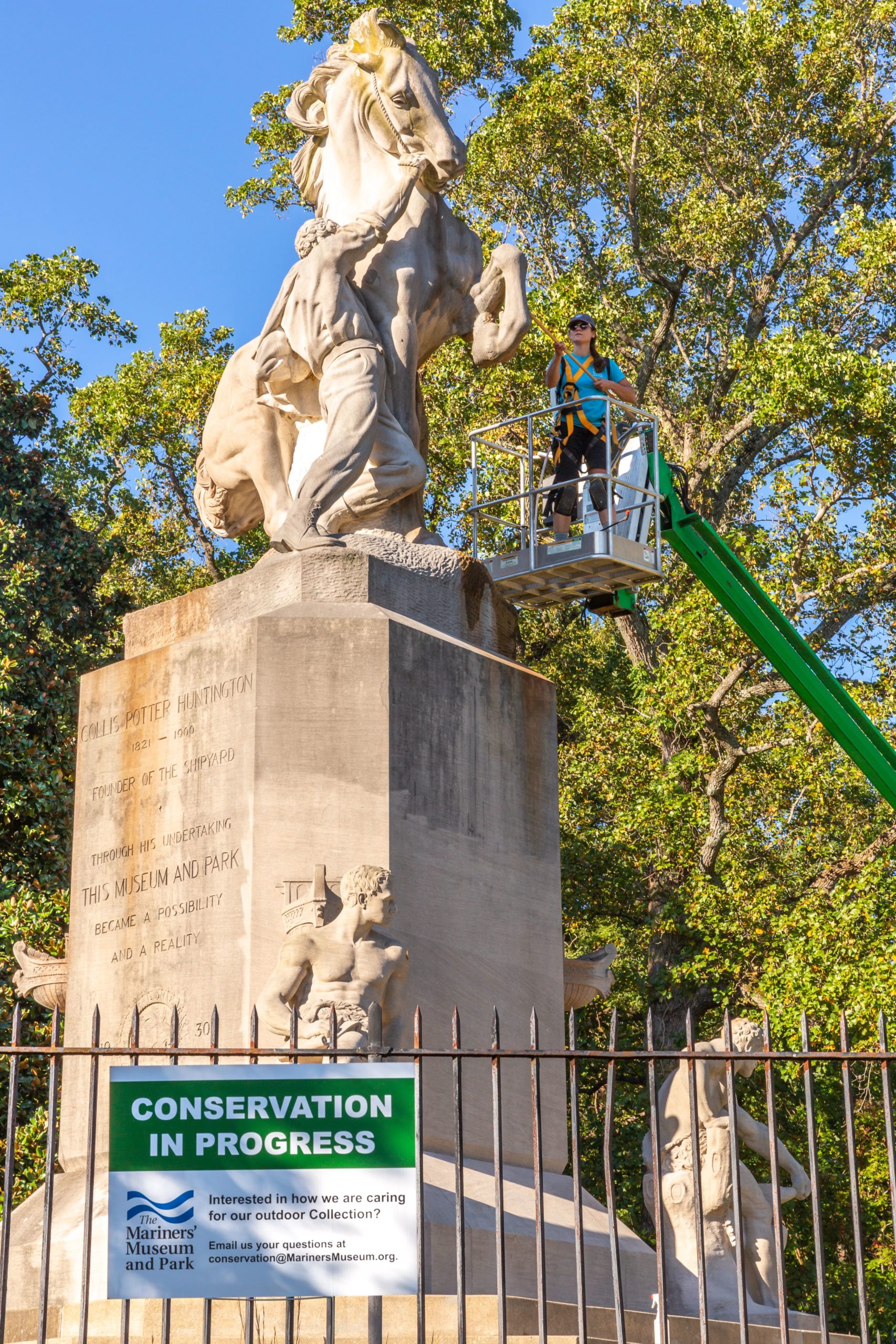 《征服荒野》的清理工作是雕像处理计划的第一步,包括修复破损,通过具体步骤解决水迁移造成的碳酸盐沉积。然而,清洁现在将成为我们在水手博物馆和公园日益增长的户外收藏维护计划的年度一部分。亚博平台网址所以,当你享受我们的公园的美丽和它所承载的丰富的历史时,请留意我们!