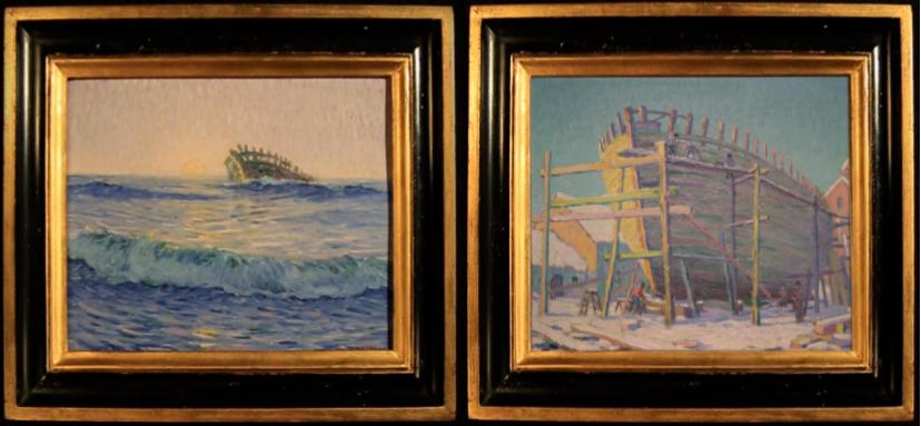 船的故事是生命周期的故事。在这个大约1924年系列由哈里娜兰德系列,艺术家在面板绘画上使用5个小油来说明这艘船的创作,生活和消亡。但是有两个生命周期直接与这个系列相关联。